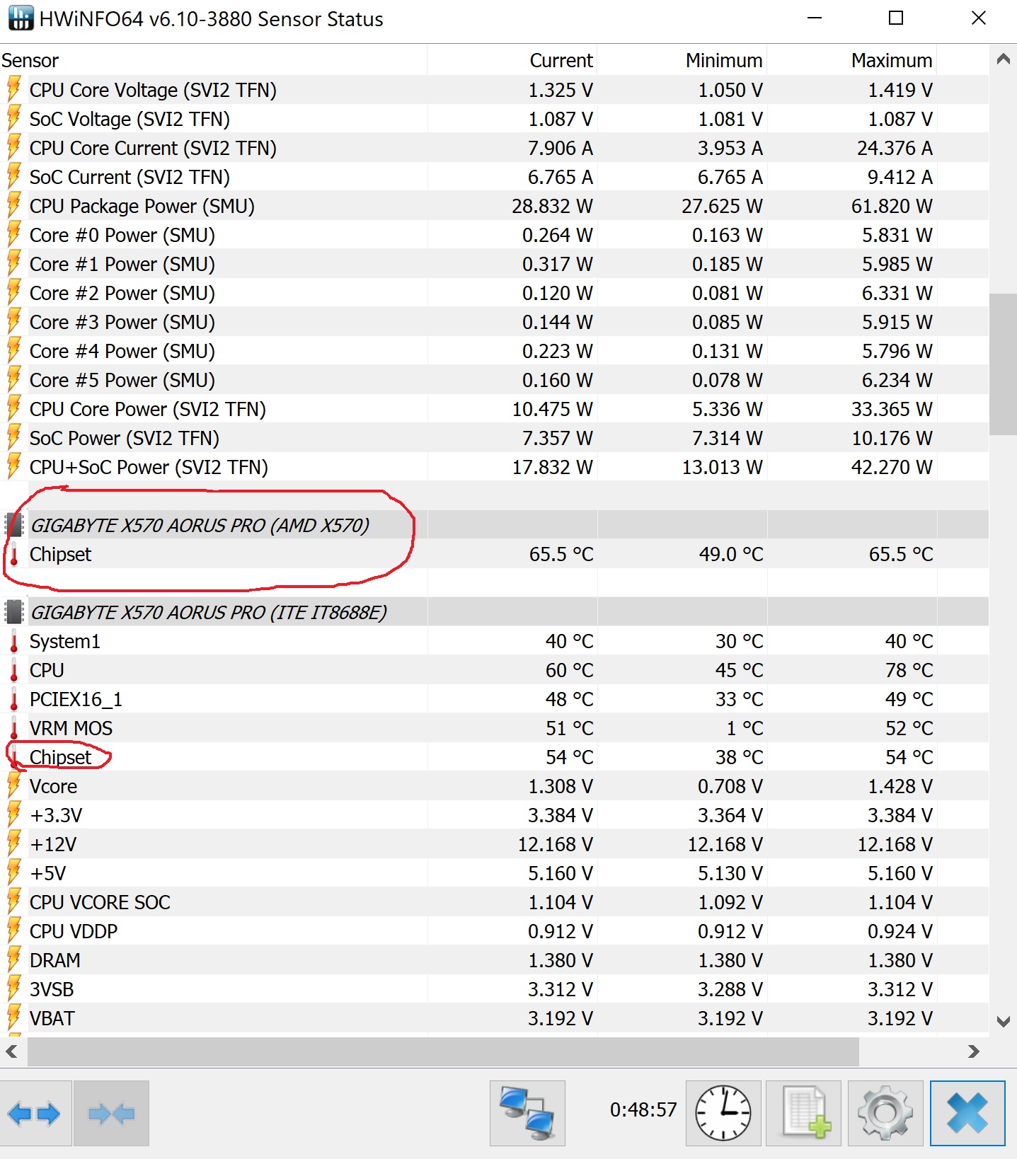 подскажите что за обведенный первый чипсет на материнке, он только в аиде отображается и в играх доходит до 80 градусов. В софте для матери есть только второй и у него температура норм
