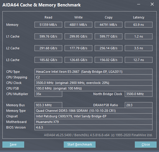 Ребят, а почему на запись у оперативы такие позорные цифры? Вроде такое у двухканала встречается. У меня, судя по AIDA и CPUZ - 4х канал. И в БИОСе тоже пишет 4х канал. Материнка - X79 v2.81. Проц - Xeon 2650v2. На X79 PlexHD Turbo с аналогичным процом и памятью выдаёт 46854 МБ\с. Пробовал на 2133МГц, вроде как взялось на стандартных частотах, потом сбросил на дефолт и уже не бралось почему-то. Хз.