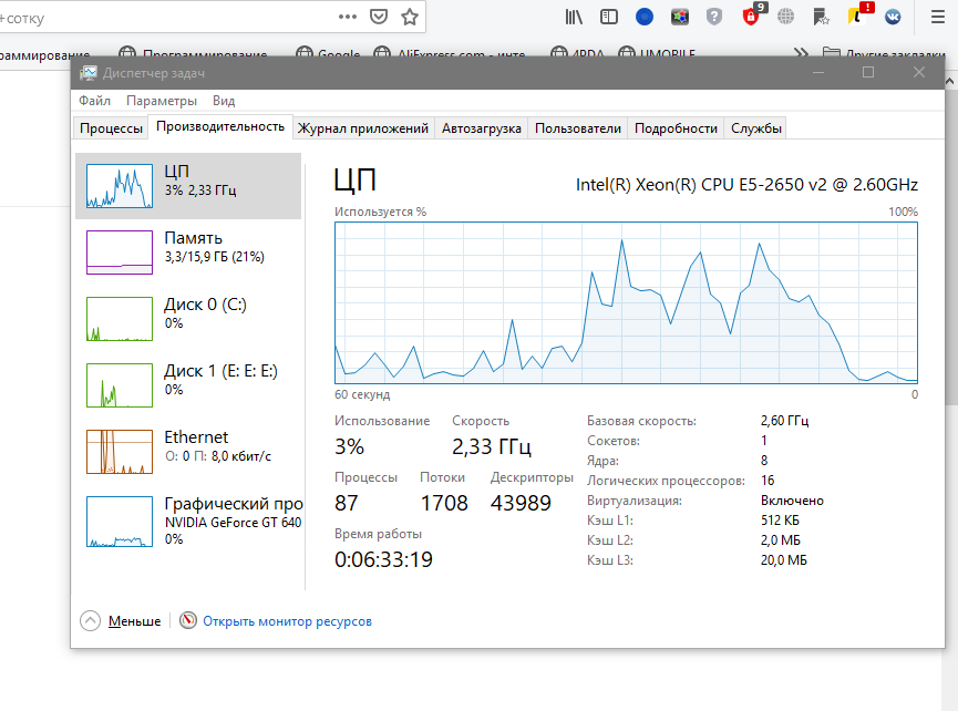 Что я делал: 1) Выключил турбобуст в биос - помогло лишь на двое суток. 2) Сброс биос изъятием батарейки - помогло на сутки. 3) Протер контакты оперативной памяти и процессора. 4) Проверил прокладку врм - прилегает плотно. 5) Проводил все стресс тесты в aida 64 - всё нормально. 6) Тестил оперативную память Memtest86 - рабочая. Мать запитана от 4 пина. БП под нагрузкой стресс тестов не просаживается вообще. Вот пример того, как держится загрузка ЦП (характерны пиковые "всплески" загрузки). Иногда эта байда пропадает и тогда проц временно возвращается в нормальную работу (3 скриншот). Пока писал этот пост зависла 3 раза (это после пересборки уже).