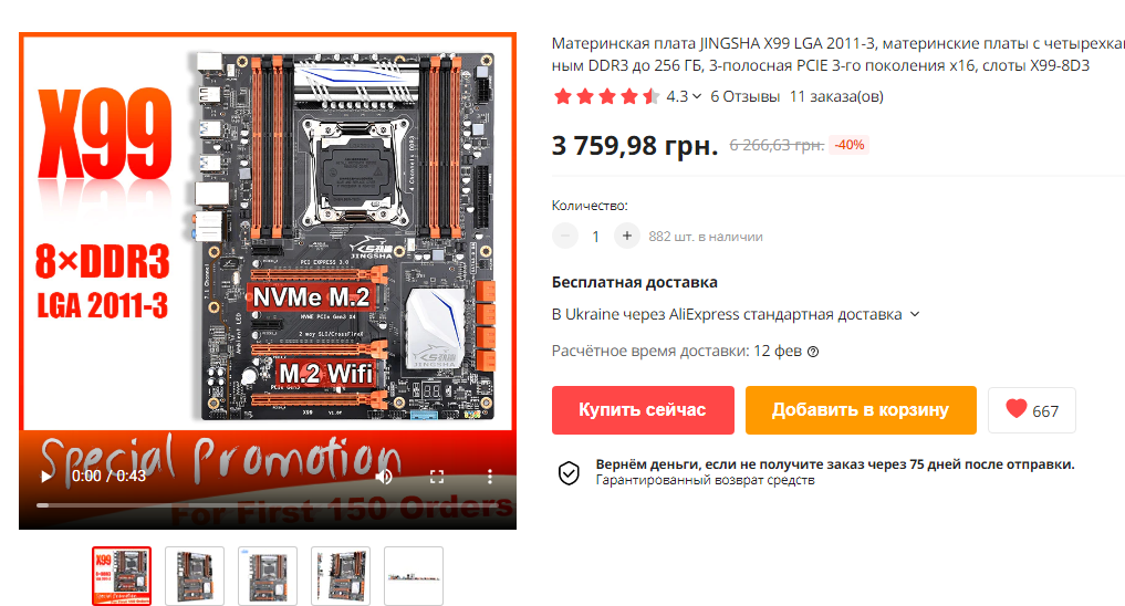 2.VEugene Продаю комплект вот такой: https://aliexpress.ru/item/100500314818 ... 1667062299 Только камни 2666 v3 Состав: HUANANZHI X99-F8D LGA2011-3 Xeon E5 2666 v3 - 2 шт. Кулера для CPU - 2 шт. 8G DDR4 2133 REG ECC память - 2 шт. 128G M.2 NVMe SSD (китайский) - 1 шт. Комплект был запасной, куплен целиком мной лично, заменены в нем только камни (изначально были 2690 v3) Все проверено, запускается. Цена 22000 руб. В Москве.
