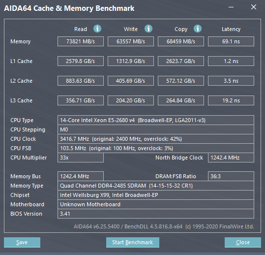 Тест скорости кэша и памяти 2680v4 & 8x16 ГБ