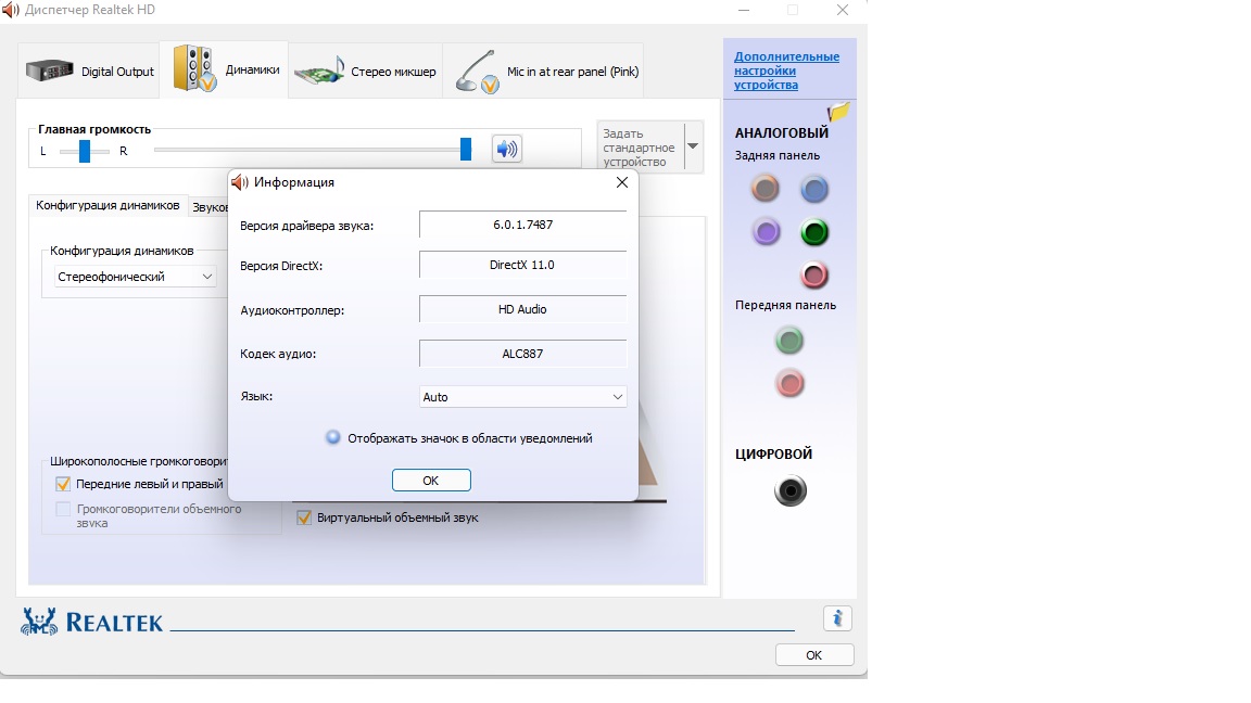 Подскажите, а передняя панель работает на TF? Подключил микрофон на переднюю панель но его вообще не видно((( Дрова и диспетчер реалтек также не показывает что подключен микрофон. На заднюю панель все видит и микрофон работает(