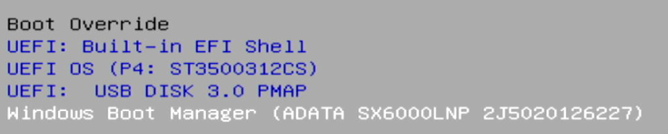 1. шелл. 2. вин-пе на гпт. Причём в корне нет загрузчика. Нет боот раздела. В сстр есть боотмрг, бсд, боот. 3. флешка с вин-пе на мбр. 4. Вин-7 на гпт. Биос сам выбрал как и с чего можно загрузить, даже там, где нет загрузчика (#2) вообще. Это не просто список устройств, а устройств с которых можно произвести загрузку.