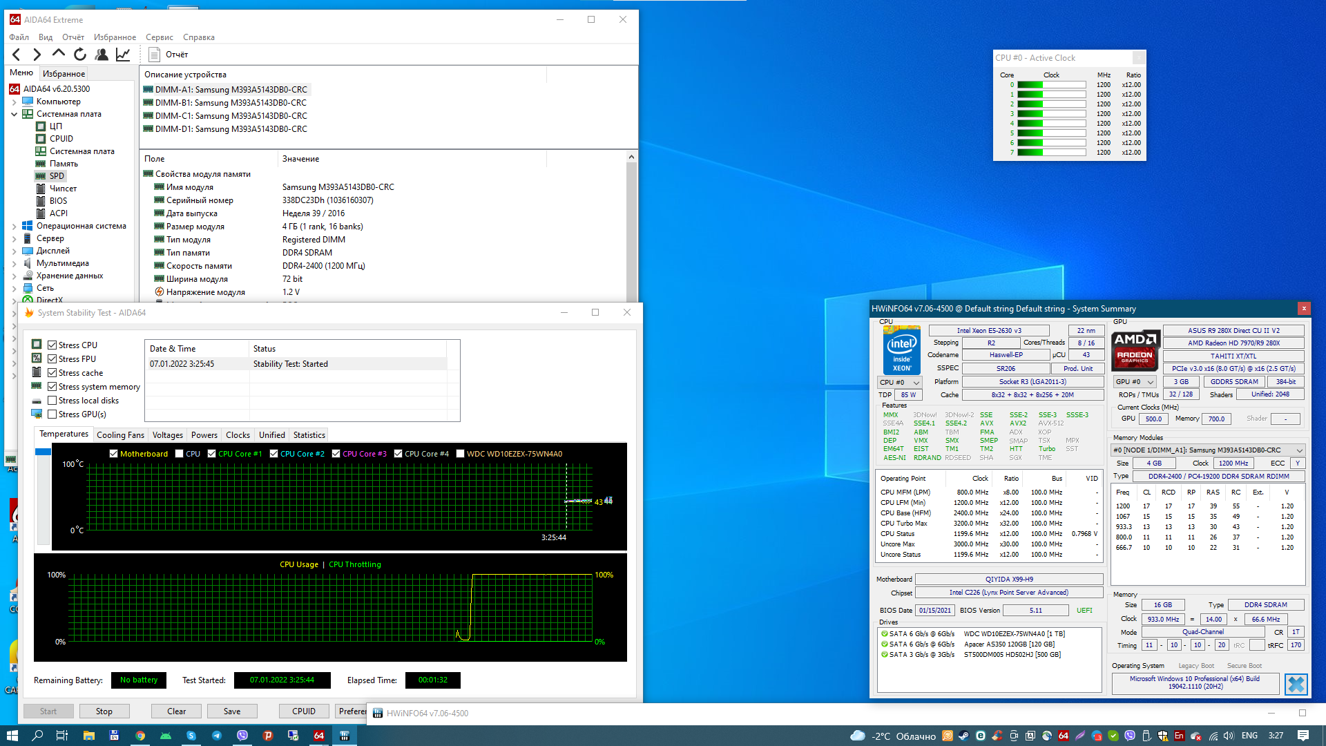 Камрады, всех приветствую и поздравляю с Рождеством! Собственно, возникла проблема следующего плана: имеется xeon e5 2630v3, мать - qiyida x99-h9 v2, 3 плашки по 4Гб DDR4 2400 Samsung ECC REG (работали в трехканале). биос обычный от технопланеты с анлоком турбобуста и андервольтингом на 70 мВ. Все прекрасно работало и "молотило" по 8 ядрам на 3.2 Ггц. Докупил 4-ю планку оперы, аналогичной маркировки, из того же магазина. Запустил стресс-тест аиды и обнаружил, что ядра работают все на 1.2 Ггц. 16 Гб определяются, 4хканал. Попробовал вроде бы все: проверил схему электропитания в Win10, убедился, - максимальная производительность; в биосе множитель максимальный не ограничен; температуры низкие; протер все контакты оперативы, процессора, колодки под ОЗУ (ластиком, спиртом). эффекта - ноль. вытащил новую планку, переставил одну планку из трех ранее имеющихся (с ними все ок работало в их слотах) на место, куда устанавливал новую, та же ерунда: стабильно 1.2 Ггц по всем ядрам. Логично предположить, что проблема в гнезде ОЗУ. Смотреть, все ли норм пропаяно? Или может кто сталкивался, видимо проблема в слоте... ( Заранее всем спасибо!
