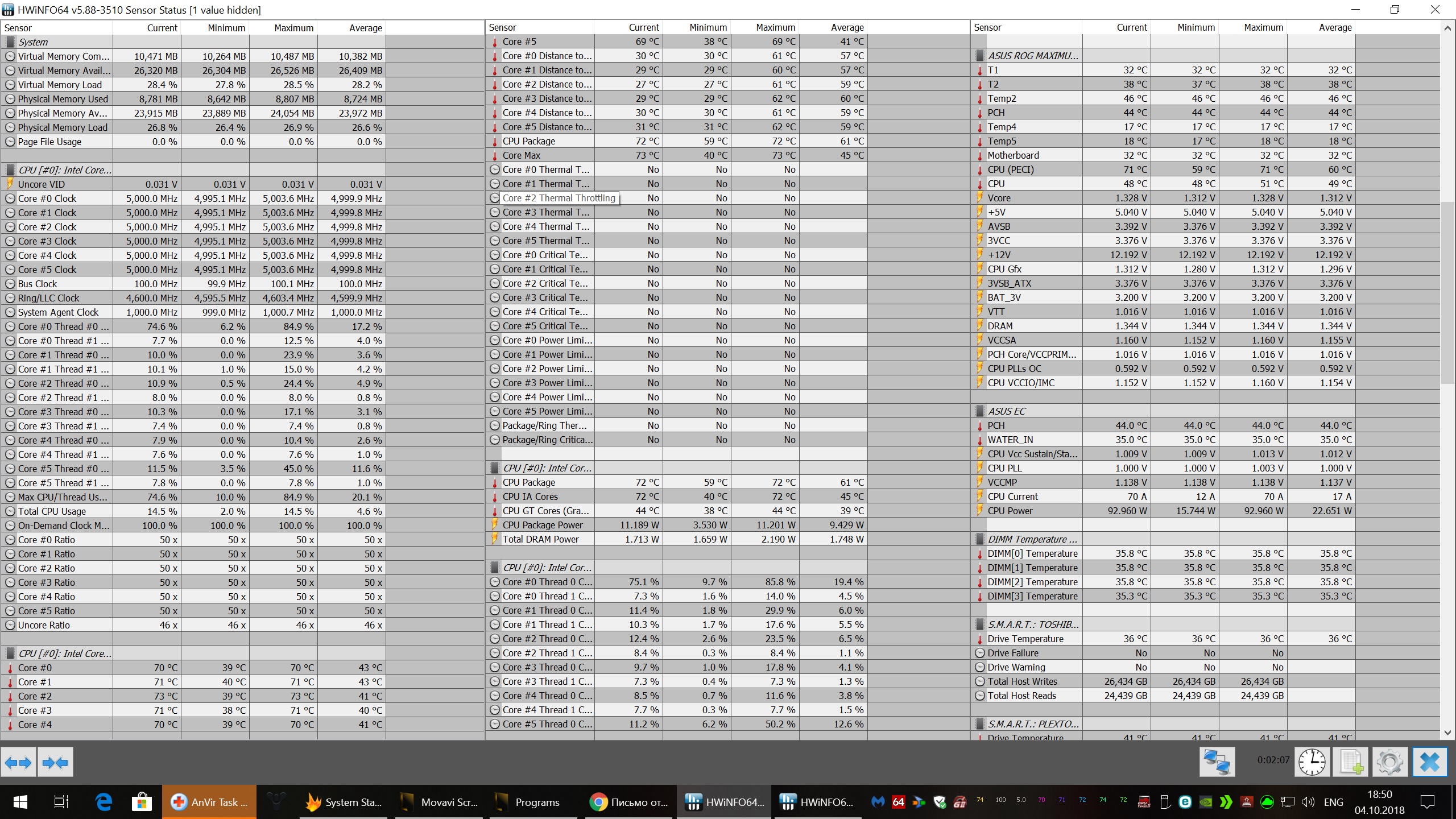 Комментарий к файлу: это температуры в стресс тесте аиды. стресс тест аида5ггц 1111.jpg [ 1.21 МБ | Просмотров: 1295 ]