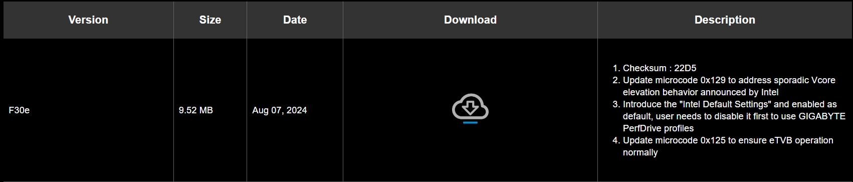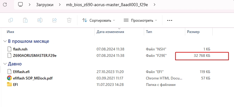 Для моей z690 aorus master появился биос f29e, только при попытке его прошить выдается что он некорректный. Ну и весь файла с биосом 8мб, вместо положенных 32мб. Очень странно.