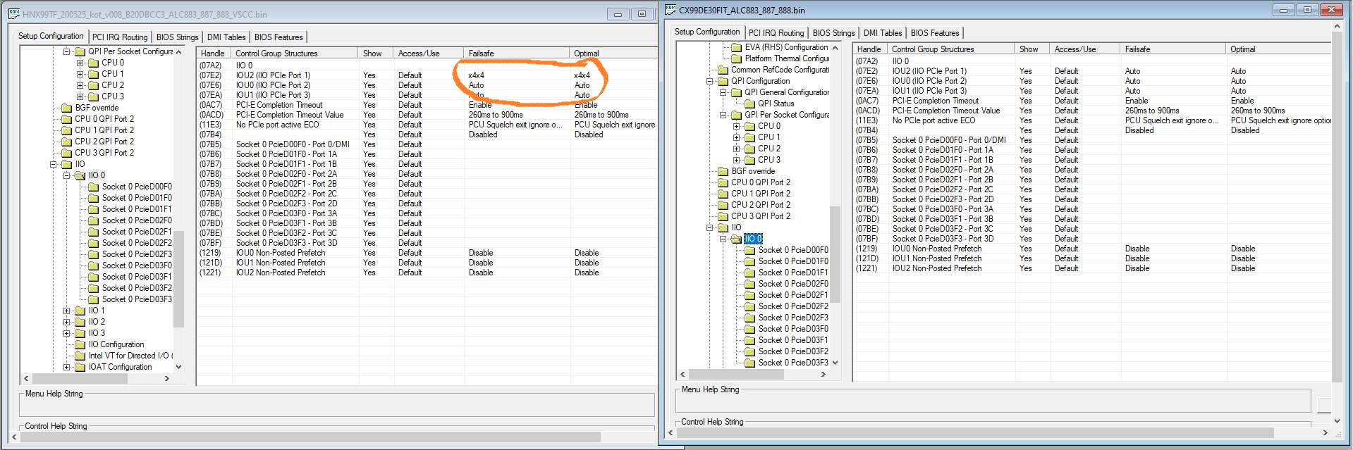 Дело скорее всего в IntelRCSetup > IIO Configuration > IIO0 Configuration > Port 1A/1B/2A/3A