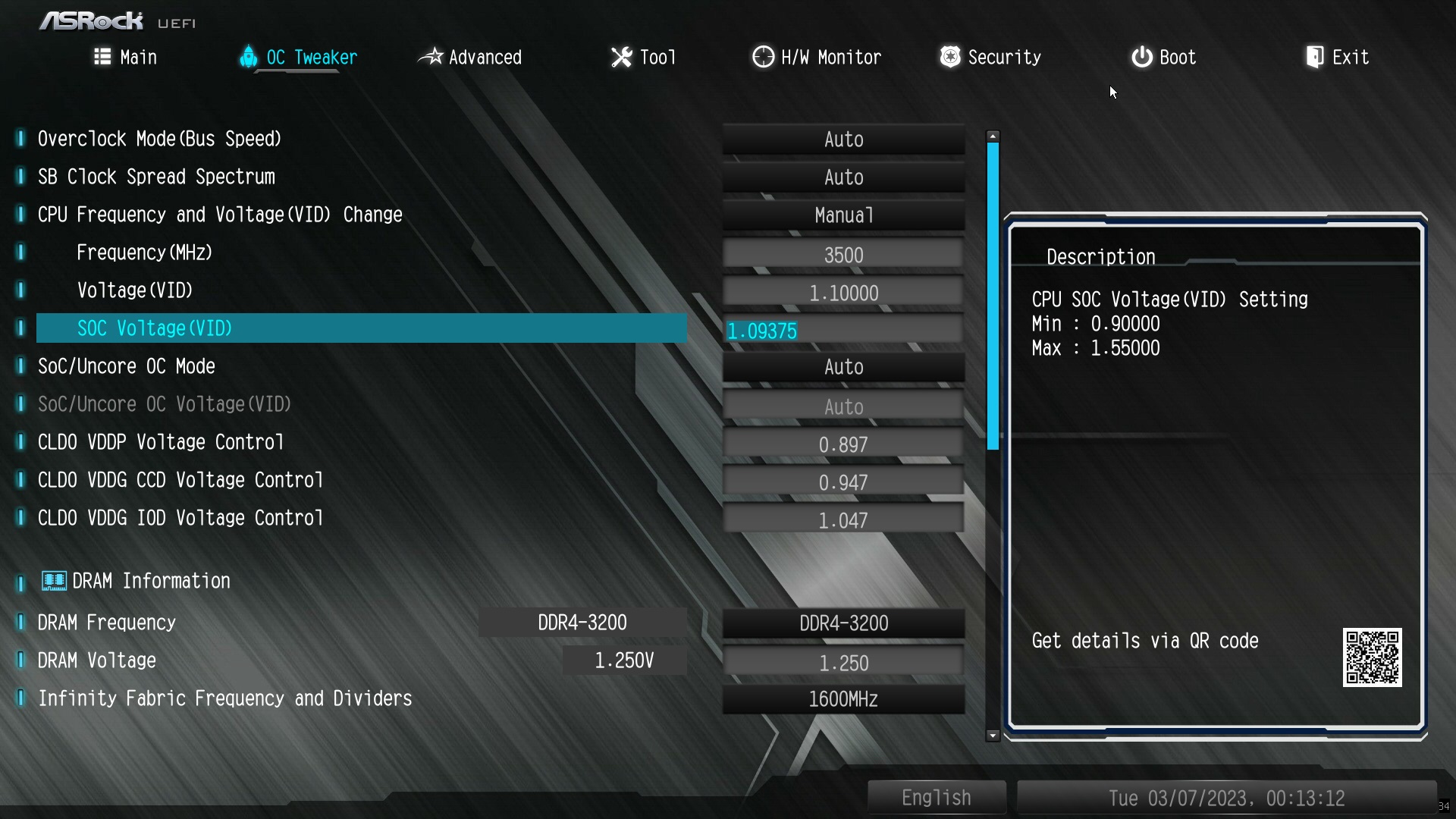 Вопрос. По мануалу меняю напряжения ZEN3. параметра VSOC(SVI2) у меня нет, но я подозреваю, что он есть SOC Voltage (VID). Но по факту напряжение не меняется. Настройки в биос: