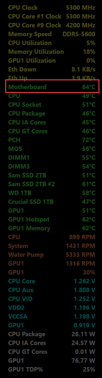 А где на плате MSI MPG Z790I Edge WiFi расположен датчик температуры? Где то возле чипсета? Почему то он высокую температуру показывает после игр. Про PCH все понятно, он 70 и выше. Но почему плата так греется