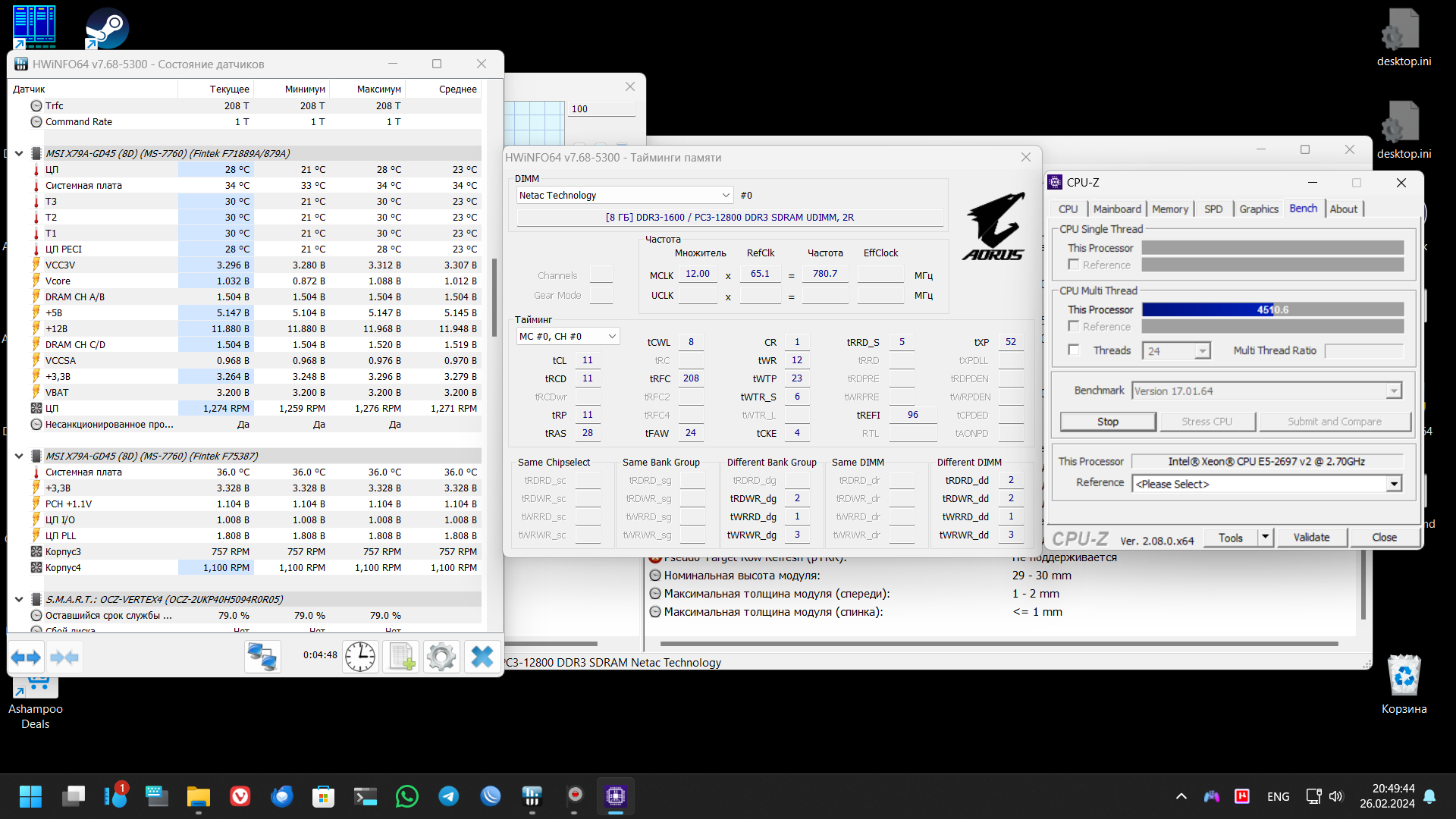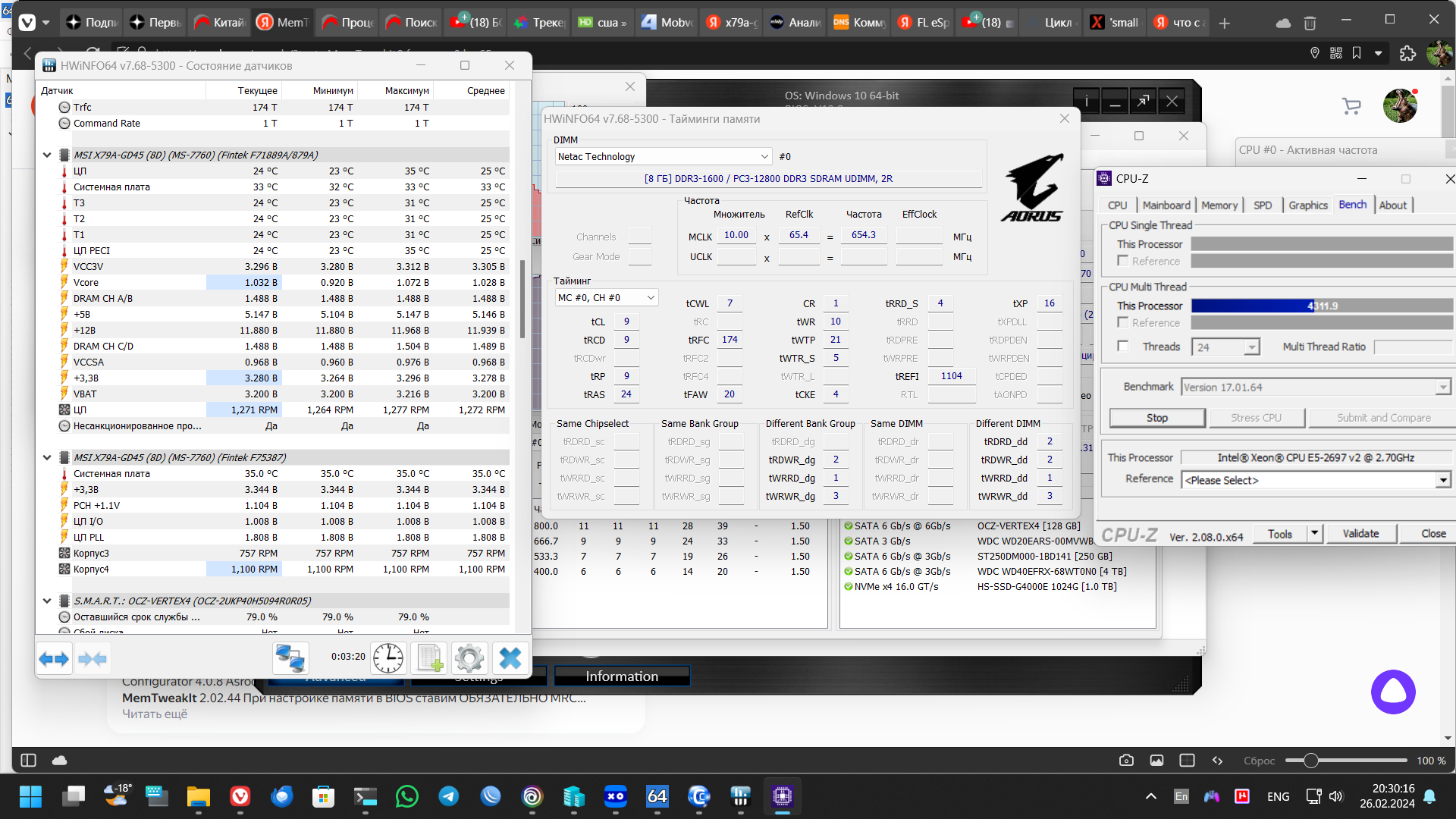 Я напряжение на памяти уже боюсь поднимать (до 1,75 поднял). Сдохнет еще 😉 Память я бы попробовал, но пока финансов нет, до конца месяца. Тем более, MSI заявляет, что там регистровая память не работает. Значит нужно искать ECC Unregistered/Unbuffered, а она, поблизости, стоит как крыло от самолета, по сравнению с Али. А с Али — хрен пойми, что приедет. MSI — отдельный «респект» за криворукость и косоглазие. В БИОСе хренова гора дублирующихся параметров, и непонятно, какой из них будет работать правильно. Тайминги просто выставить, как заявлено, вручную нельзя. Если вручную — там простыня на 3 экрана с различной «херней», параметры которой взять негде. Похоже, придется, оставлять так и собирать второй комп на 2011-3 китайском.