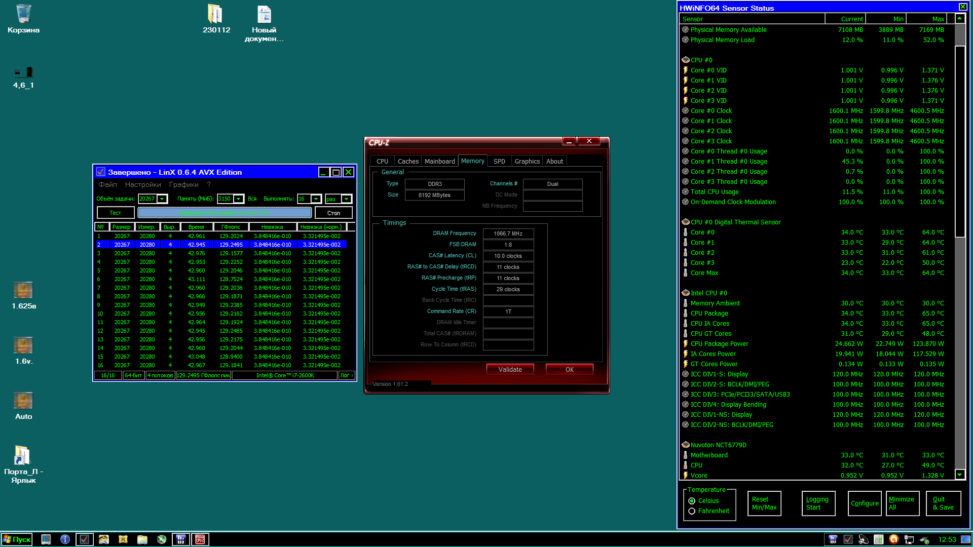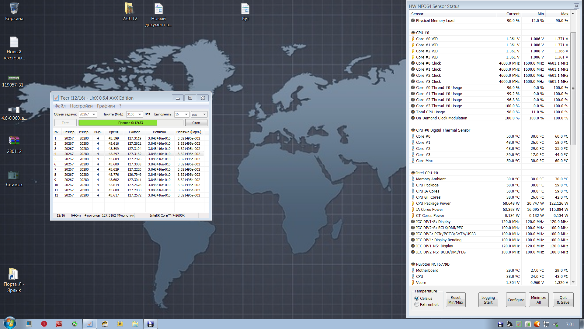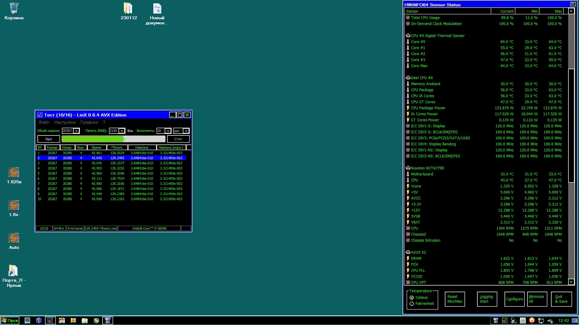 Ну вот сейчас развлекаюсь. CPU 4635MHz (103,0_память поднять x45), LLC=High_Offset+0,020v_будет гдето 0,010v (при 4500MHz было -0,005_+0,005); max_пикVc=1,368. Гфлопсы (и разброс) и температура CPU зависят и от приоритета LinX 0.6.4 - AVX Edition (самый интересный приоритет реального времени) , и от настроек Digi+Power Control. Vc под нагрузкой не проседает, а поднимается; у некоторых наоборот.
