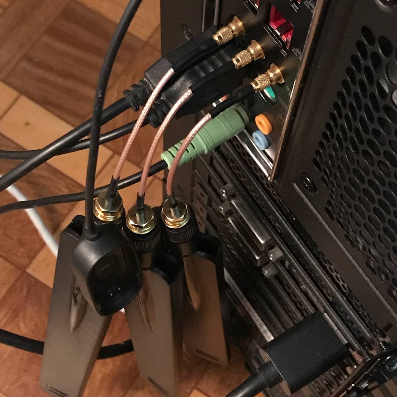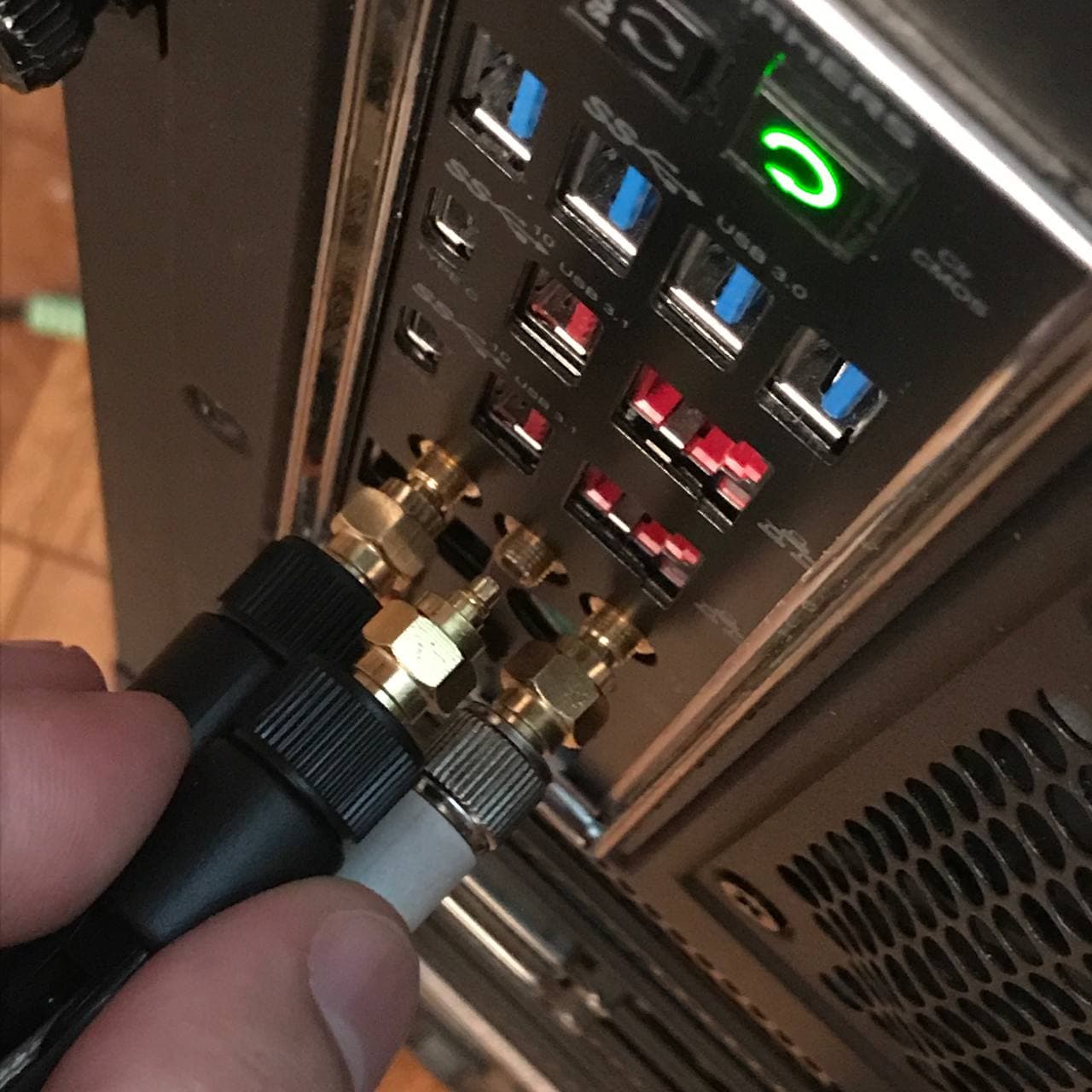 Здравствуйте! Может быть кому-то еще пригодится инфа по разъемам для вай-фай (wi-fi, wi fi, вай фай) антенн. Называются такие ММСХ и используются, насколько я понял, в пультах для дронов и маленьких модемах (мб ошибаюсь), стоят копейки;) Я заказал два варианта таких переходников, и оставлю здесь несколько фотографий как это выглядит. Скажу сразу — красиво торчащих сзади антенн добиться не получится, сам разъем прокручивается и антенны падают вниз под своим весом. Обычный переходник на SMA антенну по своей природе великоват, и из-за этого для самих антенн остается мало места ввиду небольшого расстояния между гнездами на самой материнке, по этому мои большущие "плавники" не поместились. Пришлось использовать второй тип, который с проводом. Получилось честно говоря колхозненько, но главное что работает. Так же думаю в будущем заказать и затестить цельную антенну с ММСХ разъемом, но визуально они выглядят как чупа-чупс, а других вариантов я пока не нашел((