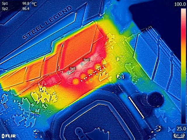 Ну он там и правда горячее, чем у аналогичных по цене плат. Плюс неотключаемая вертушка и невозможность подключить корпусной type-c при установленной длинной вк, без применения уголка(его asrock бесплатно высылает через обращение в саппорт).