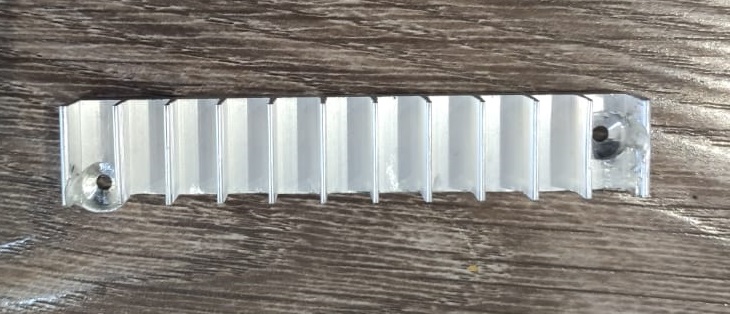Выпилил по нужным размерам, обточил где нужно на наждаке, засверлил отверстия под крепежные винты. Так как винты коротковаты расширил отверстия до минимальной толщины 1,5 - 2 мм. сверлом большего диаметра. Снял пластиковые шайбы с обратной стороны материнской платы в местах крепления винтов, наклеил хорошую термопрокладку толщиной 1 мм с каждой стороны. получилось вот так