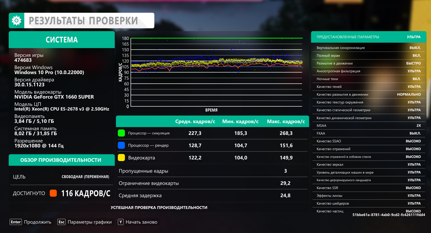 xelbrb, это не факт. Там всё в пределах погрешности и настроек ОЗУ. Другое дело, что 2696v3 наравне с 2678v3 в процессорной симуляции. А в процессорном рендеринге 2678v3 хуже всех, но в пределах погрешности. У papasumy монитор на 60 Гц, а у Вас на 144 Гц. Так что на пропущенные кадры что-то может повлиять, да и на цифры тоже. Всё-таки RTX 3060 мощнее GTX 1660 SUPER в 2,5 раза, а по видеокарте тест показал различие всего в 1,25 раза. Так что RTX 3060 вообще не загружена особо. Возможно в 1440p разница была бы более ощутимой.
