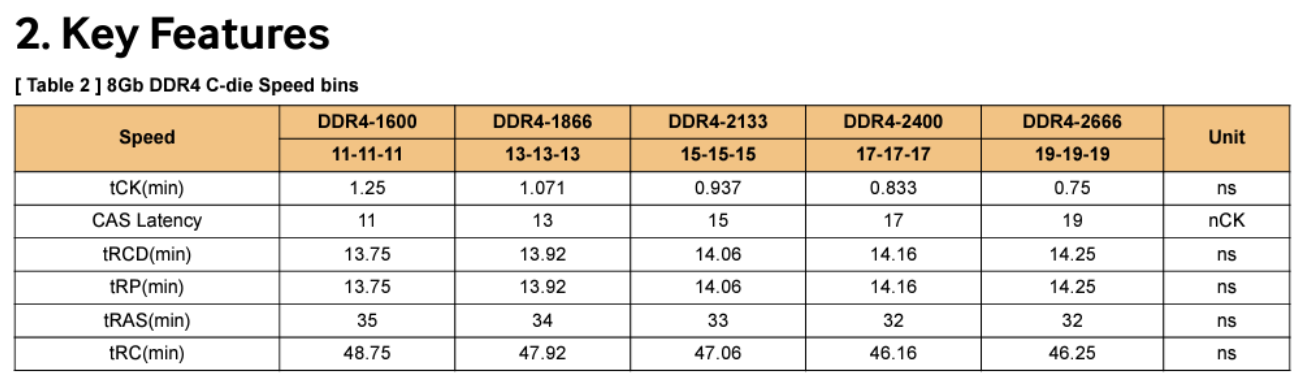 Оперативная память Hynix [H5AN4G8NMFR-UHC] рассчитана на использование сравнительно высокой (2400 МГц) частоты. Допускается использование и других частот, наименьшей из которых является частота 1866 МГц. Память обеспечивает пропускную способность 19200 МГц. Устройство соответствует таймингам 17-17-17.