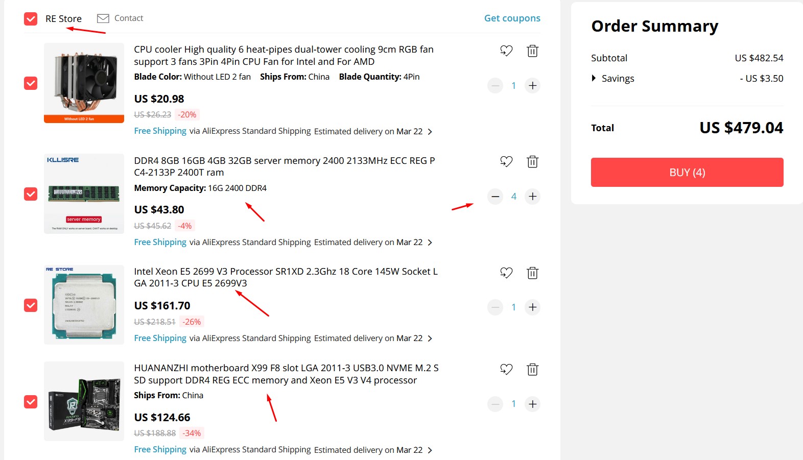 Я заказал Huananzhi F8, 2666v3, когда он был по 2500 руб., и снеговик шеститрубочный с 1 вентилятором на 120. Память будет десктопная. Питальник на 750 Ватт. Думаю, на "попробовать" хватит. Если понравится, поставлю или 2696, или процессор серии v4.
