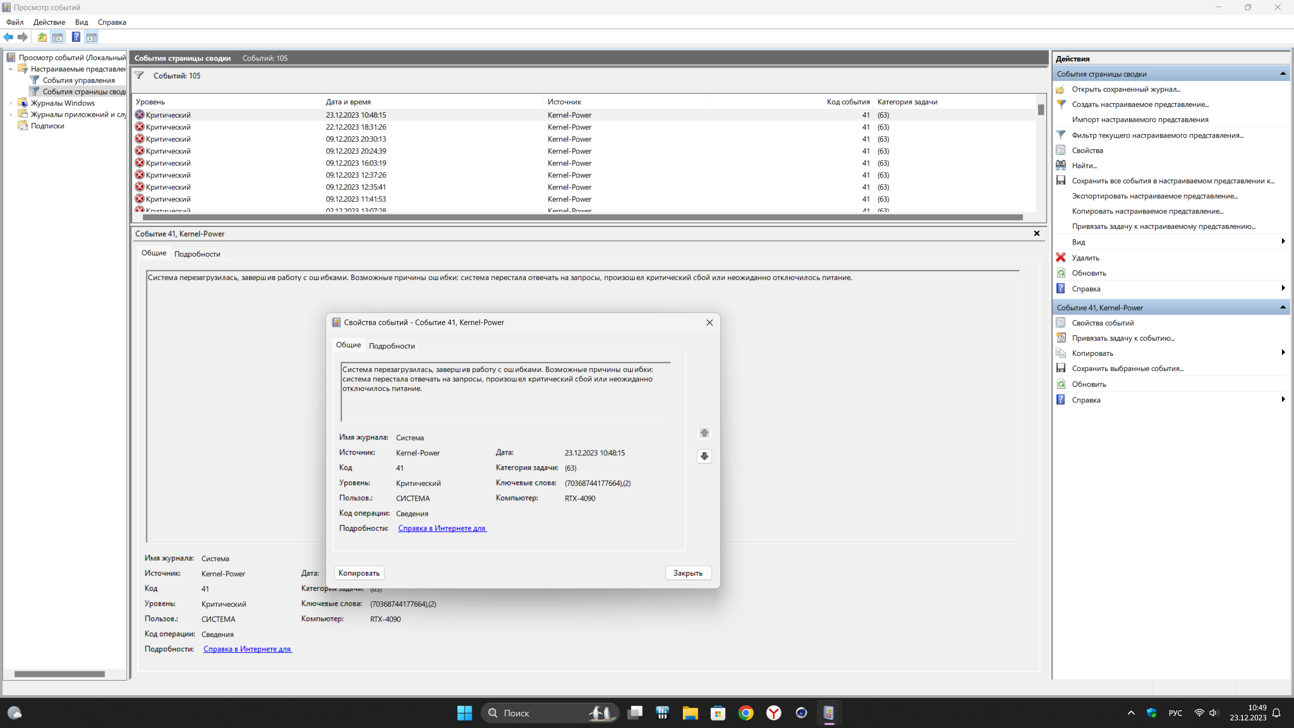 вы можете провести тест? 1. выключаем полностью ПК (не перезагружаем, а именно выключаем) 2. как включаем нажимаем DEL, попадаем в БИОС, не делаем ни каких изменений вообще, нажимаем F10, выходим 3. следом загружается ОС, и если открыть Журнал событий нажав win +x -> выбрать Система, и чуть чуть пролистать вниз, там и будет критическая ошибка 41(63) " Система перезагрузилась завершив работу с ошибками. Возможные причины ошибки: система перестала отвечать на запросы , произошел критический сбой или неожиданно отключилось питание." только вы можете реально проверить? а не как предыдущий фантазер, почему прошу именно убедиться, потому, что в сервисе проверили на 3х машинах, и на всех такая ошибка, именно в этом случаи, если делать как я описал операционка win10/11 Насчет службы igccserive сейчас я материнку отдал, и на ней проверить не могу, но по факту, это вообще нормальное поведение, если у меня все настройки BIOS установлены как дефолтные? спасибо заранее