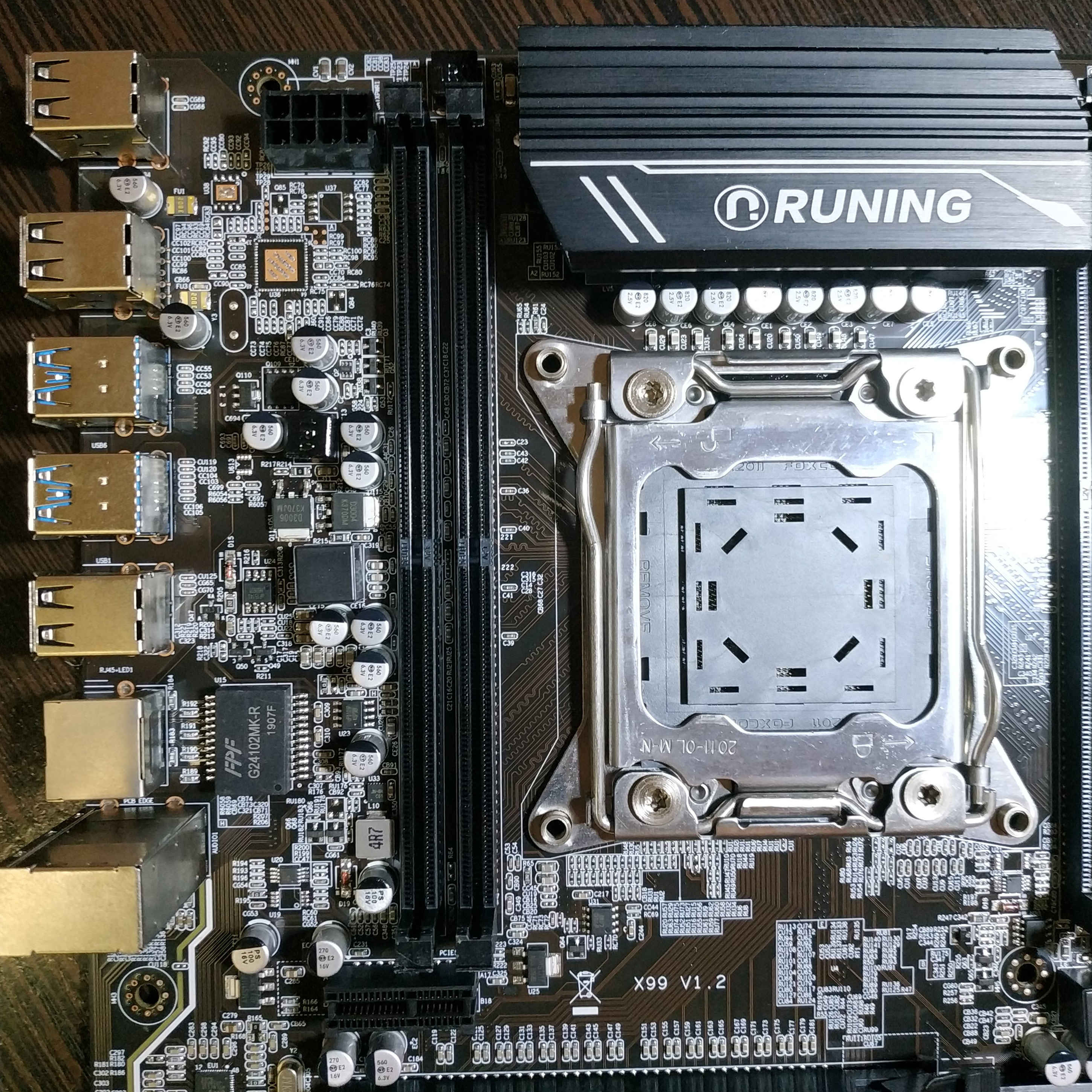 Приехала Runing x99 v1.2, заказывал под сборку медиасервера. Посмотрел как реализовано питание USB, в отличии от TF на ней питание 14 USB портов распределяется через 2 транзистора FKK3101 и 4 самовосстанавливающихся предохранителя по схеме; 1 предохранитель на 2 USB порта, с исключением, задние 10 USB порта питаются через 2 запараллеленых предохранителя, и по транзистору на 4 + 10 портов соответственно. VRM 6 фаз, мосфеты QM3098M6 и QM3092M6, то есть исполнение ровно как у x99-TF и F8 (это мощней чуть больше чем на четверть, сравнительно с PlexHD x99 подобными версиями плат на парах MDU1514 - MDU1517), при этом радиатор массивней и без вентиляторов, что лично меня радует. Радиатор отлично контактирует с элементами через хороший термоинтерфейс.