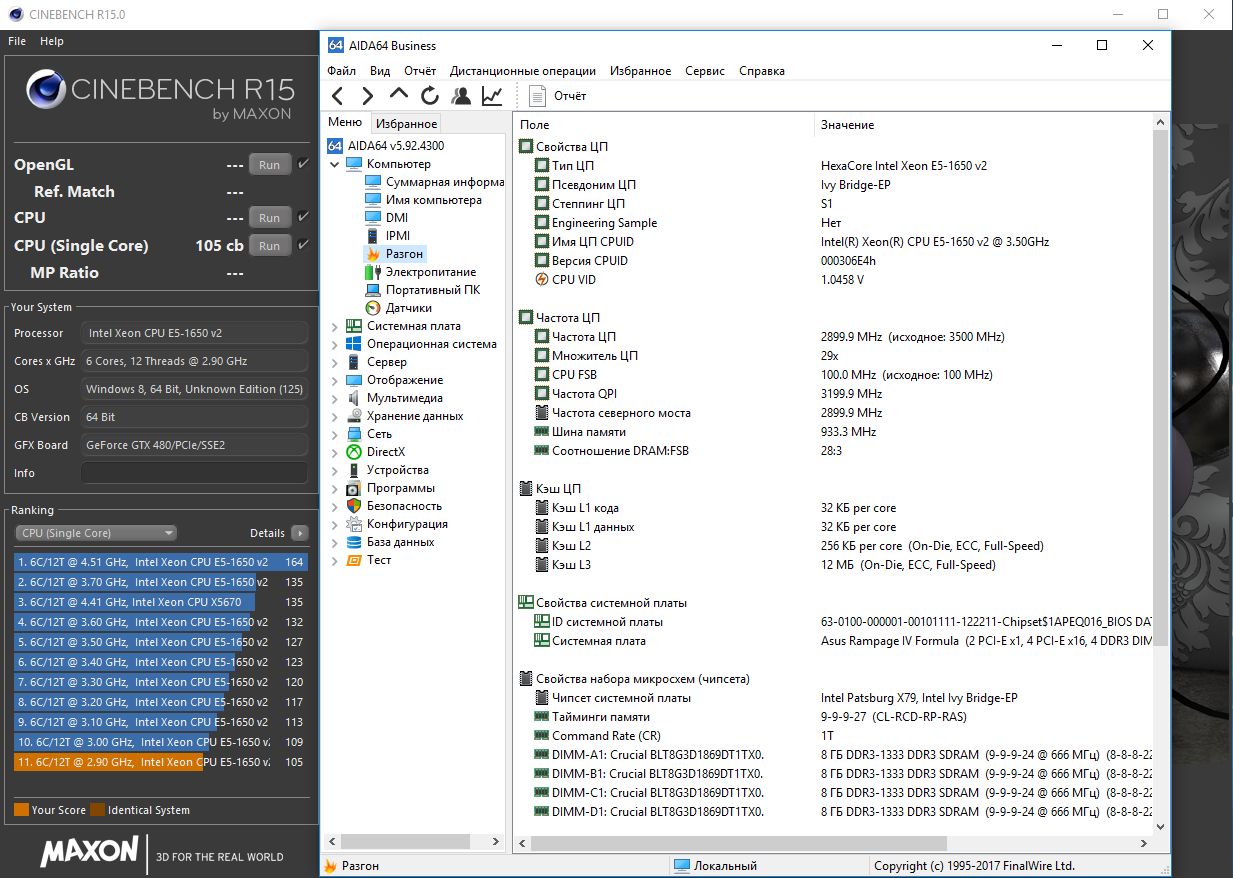 итак подогнали православный тест = на частоте проца без турбобуста ака выключенным турбобустом в биосе на Е5-2680v1@2700Mгц будет +- будет равно процу V2 на частоте 2500Mгц(даже не знаю есть ли такие:) ) по всем ядрам, ну и СPU-Z до кучи.