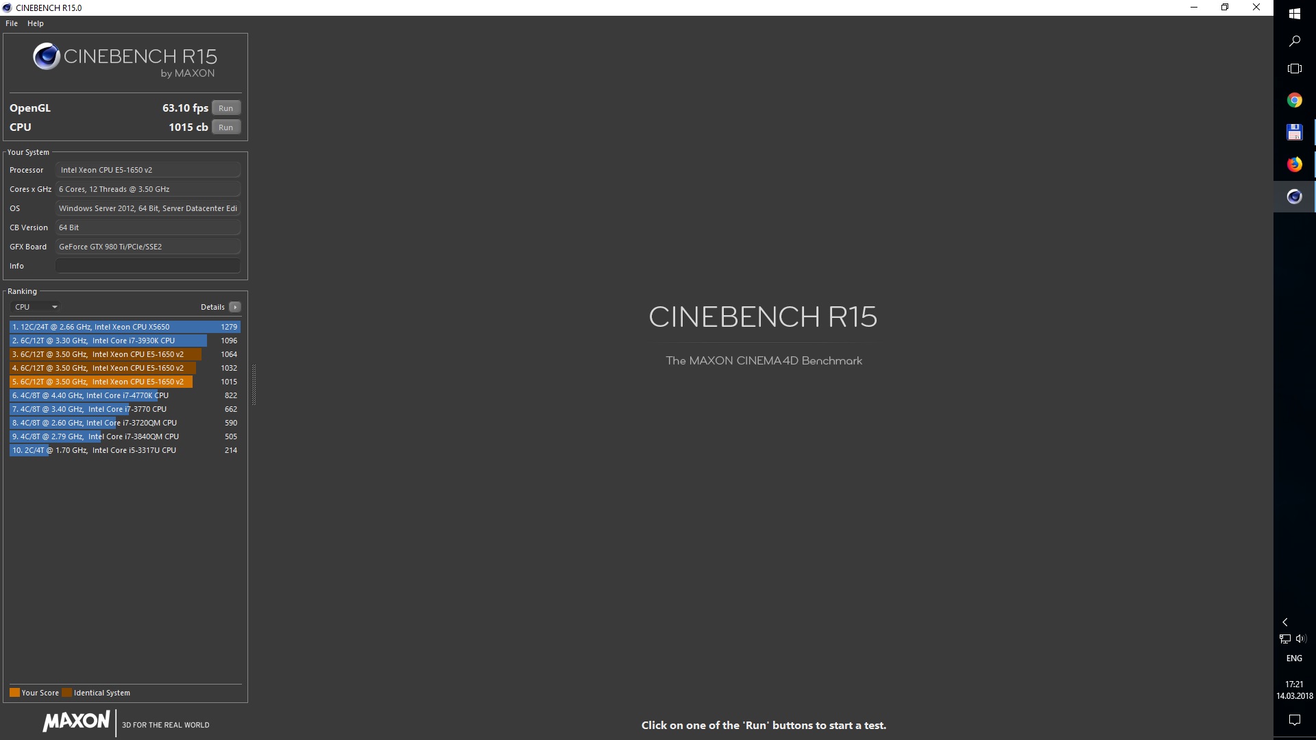 По вашей ссылке в синебенчь 1650 в стоке выдаёт 832 в мульте и 91 в сингле. 2650v2 = 1076 и 120