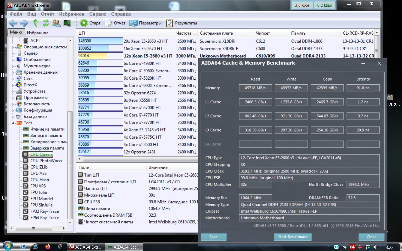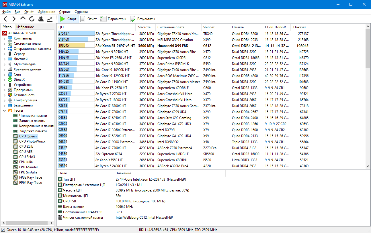 Не знаю что измеряет CPU Queen но видно насколько неэффективно это пашет на двух процах. Один 18 ядерник выбивает 150000 баллов против 135000 и ещё интересно что выше двухпроцессорная 20 ядерная система на 2660 выбивает больше чем 28 ядерная. Походу надо поиграться с настройками в биосе, со всякими NUMA и прочими. Чё-то тут не то.