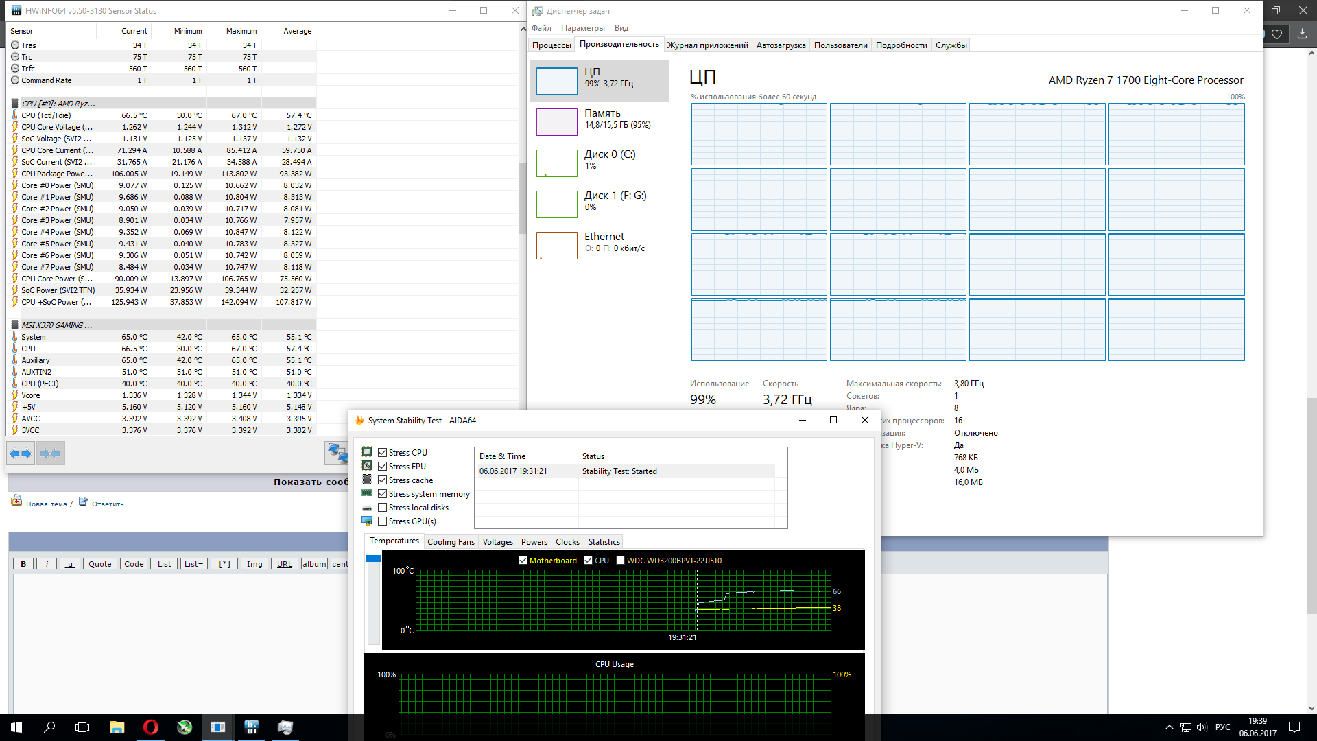 Самое интересное,что просто тест CPU идёт отлично,как ставлю дополнительно галки Stress FPU,Stress Cache-черный экран... Такие параметры при 3.8