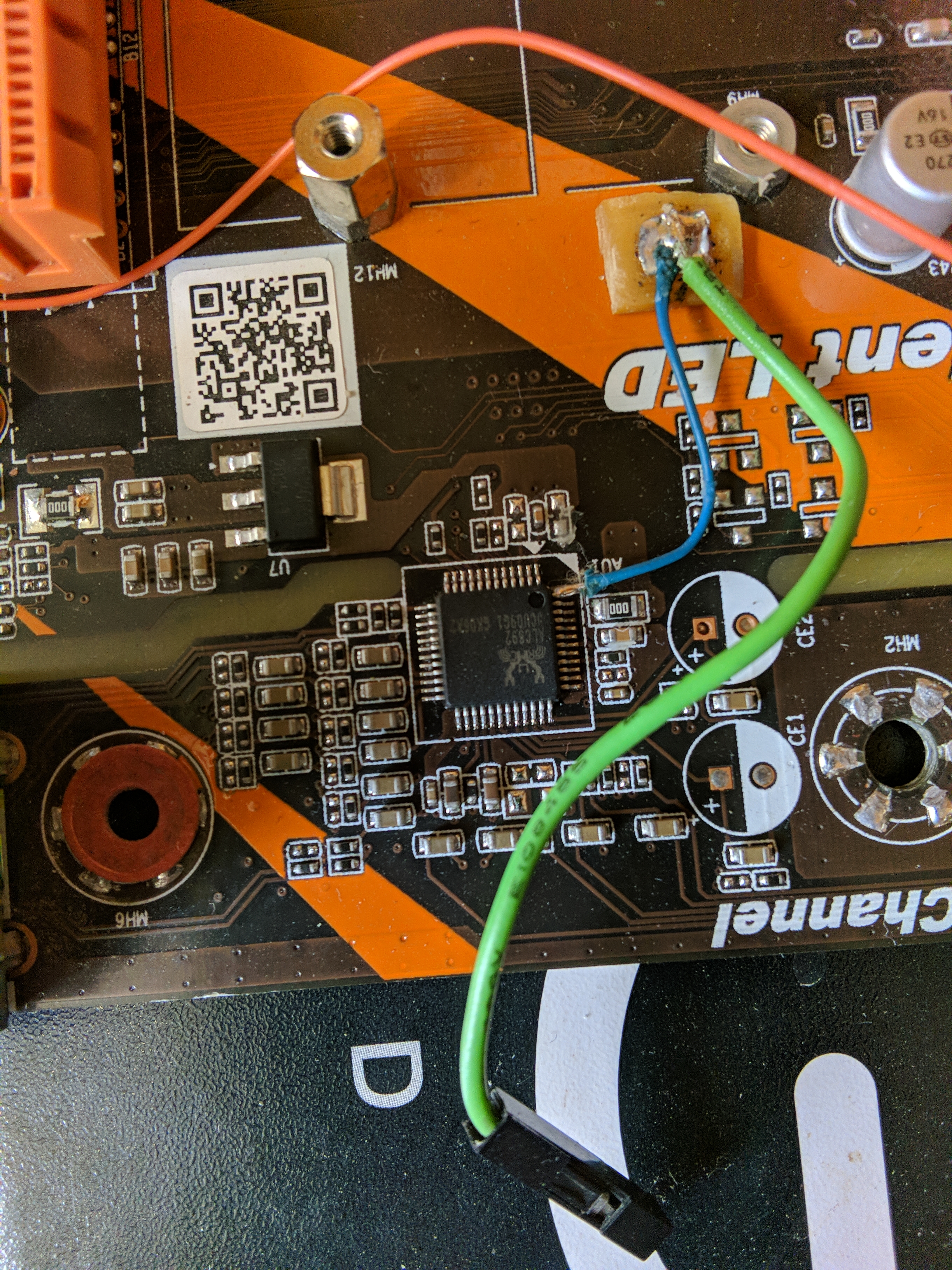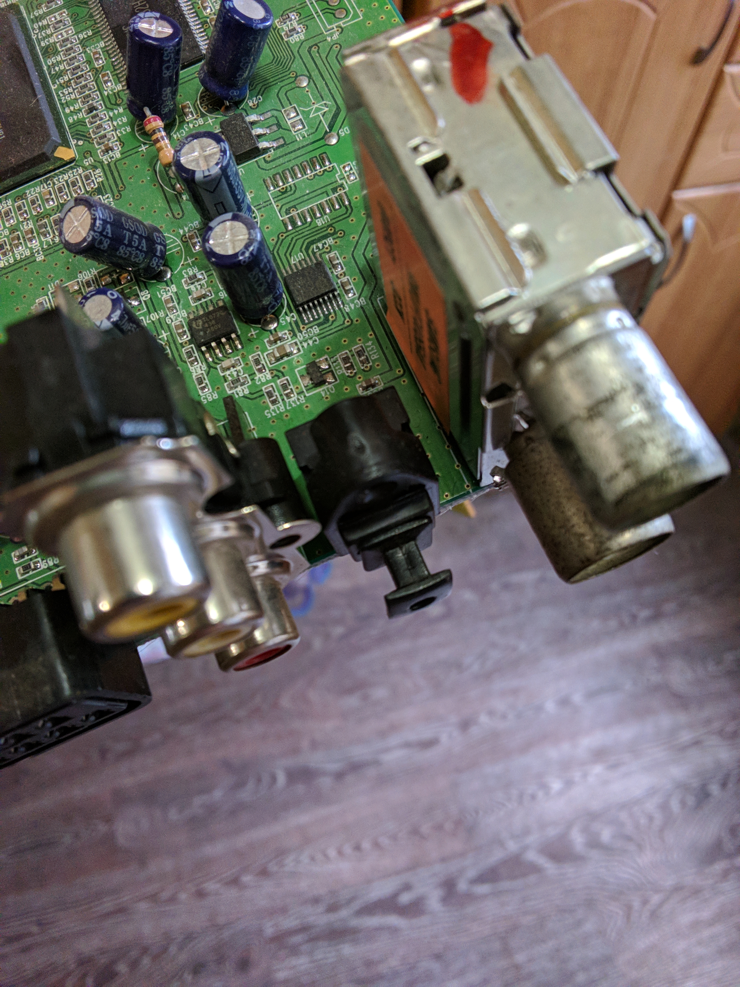 Обещал выложить фотки вывода аудио-цифры коаксила и оптики с X99 ZX-X99D3T v1.01, так как эта материнка не располагает ими на задней панели, хотя имеет звуковой чип ALC892 который поддерживает выход цифры, на плате материнки тоже нету вывода цифры, пришлось цепляться к 48 ноге а также делать обвязку из резисторов и конденсаторов это обязательно это указано в самом даташите ALC892 , схему выложил в спойлере, ещё понадобилось для запитки оптики +5 вольт, взял с выхода юсб, на авито купил за 100руб какой то древний тв тюнер, с новым оптические toslink гнездом, rca разъём у меня был. Качеством звука очень доволен, по ощущению коаксил по лучше оптики играет.