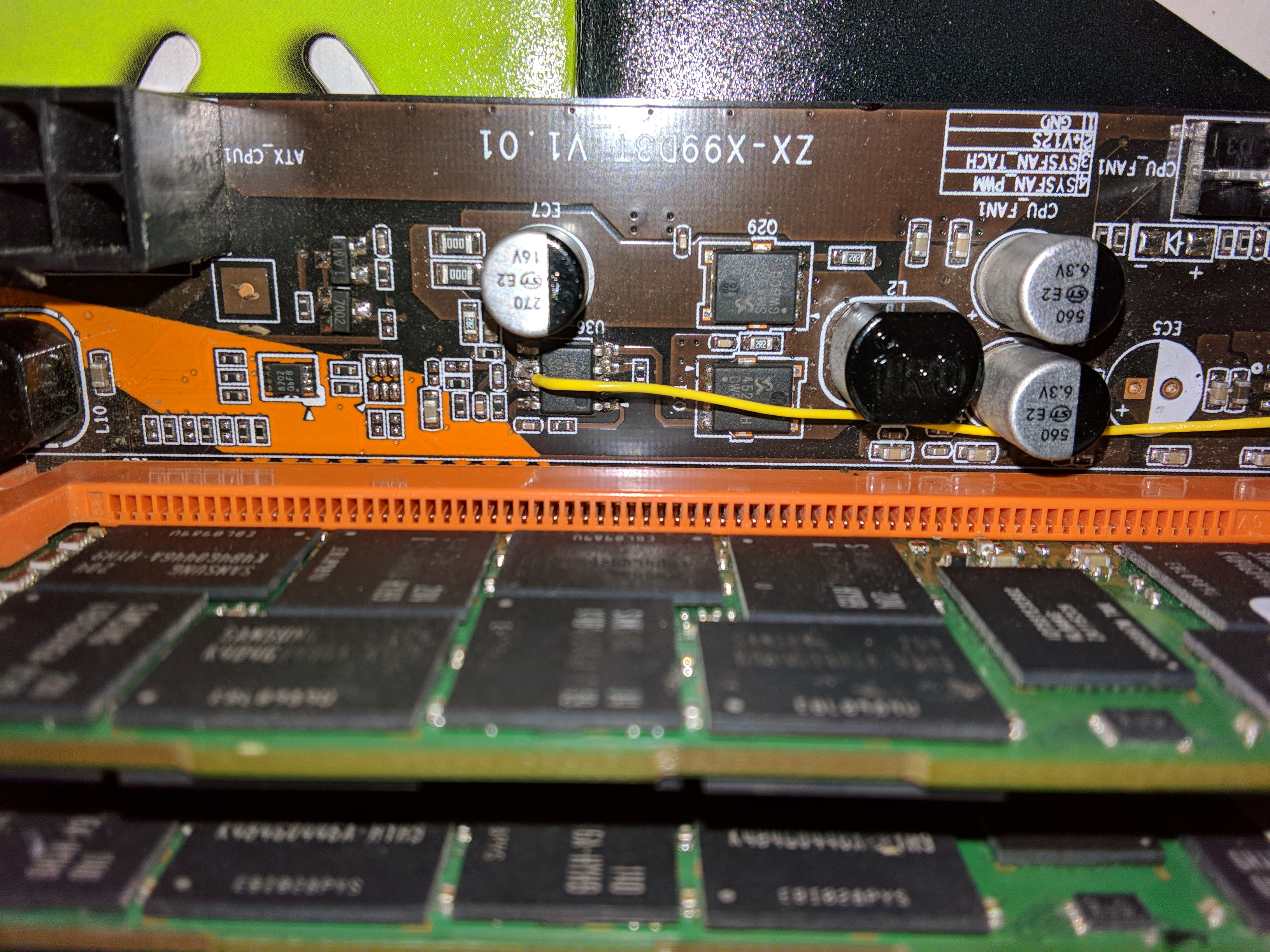 я находил массу та которая питает dimm каналы и uP1542 она тестером прозванивается с корпусом без сопротивления, поэтому я её взял там где ближе, вывел далеко подстроечники, чтоб удобно было в случае чего подстроить, снял боковую крышку выключенного от сети блока вытащил штекер с выводами HB от шинки от резюков и с помощью тестера подкрутил нужное сопротивление главное чтоб одинаково на двух было, воткнул обратно штекер и закрыл крышку. Это ни в коем случает не руководство чисто для себя как мне удобно заколхозил, раньше было 1.568в, щас стоит 1.6в ровно, выше подымать не буду, давно хотел ровные 1.6в для лучшей и уверенной стабильности, вполне безопасное напряжение в huananzi x79 gaming deluxe с завода выставлено 1.6в на модули.