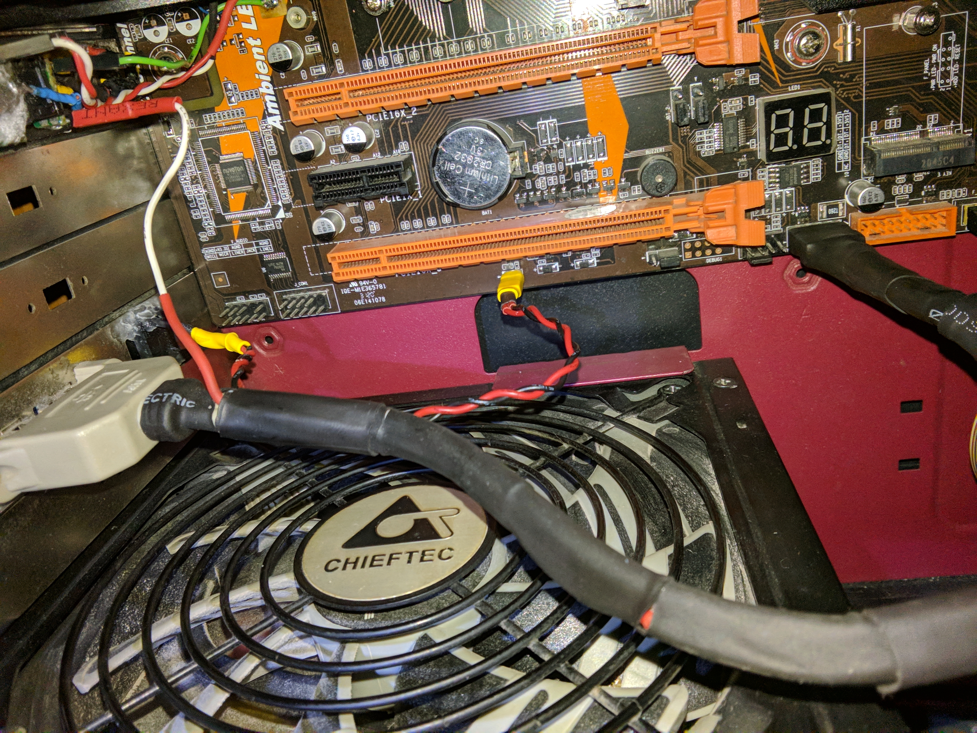 Ещё приделал для удобства на заднею планку с usb гнёздами тактовую кнопку для сброса биоса, чтоб при нужде не открывать лишний раз боковую панель блока.
