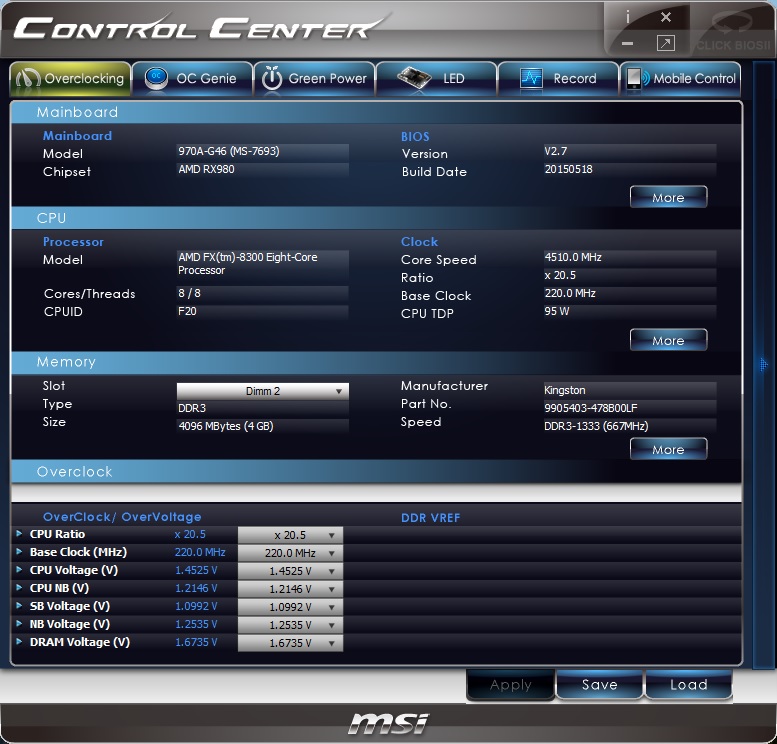 Tam est AMP, XPM profili mogesh ih poprobovat. 4.6 a zachem?!? on u tebya hot testi prohodit? polniy config systemi plz i BIOS screen voltaga