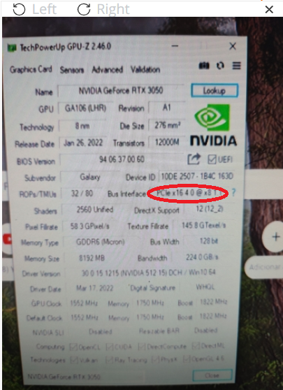 А вот вас не смущает, что эта карта под PCie x8 4.0? Линий у вас на ней до 16 не отрастет, а версия порта на китайской матери x99 останется 3.0. А на скрине из GPU-Z и вовсе x4 3.0 режим... Вот думайте сами, что лучше. На мой взгляд, 16 линий в этих условиях иметь все же лучше... Я правда не уверен, что на 3050 16 линий...