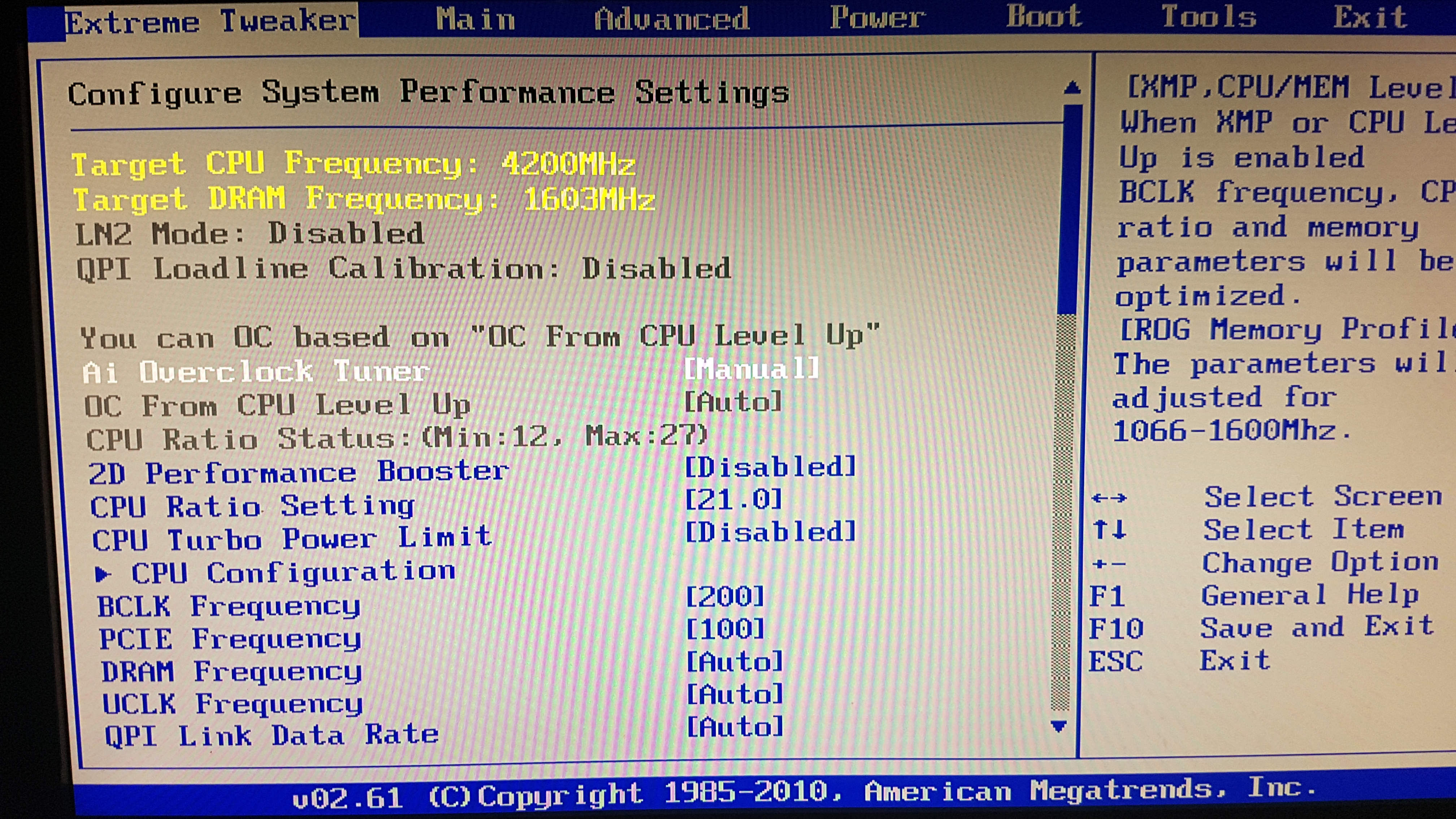 1. странные ака симметричные показатели для двурангов - чего не должно быть для 3канала см. первую строчку теста аиды Read<->Copy. у тебя сколько гигов показывает винда? при таких показателях скорее всего отвалился канал и ты, как и говорил, на 32 гигах ака ты в двуканале, хоть и пишет тебе - трех канал И ВООбще обнови- ка для начала аиду!!! 2. как и говорил - накинь напруги на контроллер памяти ака QPI/DRAM Core Voltage до +- 1.35v, а то и 1.4v 3. Чтот больно много для проца вольтаж(1.45v для 5690 xммм) для 4.2GHz => +- 1.3 4. |Dram Frequency, UCLK Frequency, QPI Link Data Rate| указывай лучше явно, +PCIE могёшь на 110 сделать 5. При такой памяти как у тя - 1866 программа минимум, а то и возле 2000Mhz 6. UCLK Frequency(ака частота контроллера памяти) подогнать(как разберёшся с отвалами памяти) гдет до 3600-3800 7.CPU/PCIE Spred Spectrum яб отрубил 8. ну чего там у тя в таймингах надо глядеть ибо память зачётная и она на 9-9-9 до 2000 должна хреначить ток TRFC яб поднял до 250-300(но бывает он не применяется by Gre4ka и надо ставиль его в авто), а потом уж уменьшать. 9. и еще не понятно зачем на памяти 1.656v ибо наверняка это проектный вольтаж для частоты 2400, а у тя 1600 10. Cpu-Tweaker 2.0 не запускается - возможно из за твоей асусовской утилиты или ещё какого мониторинга, тож бывало/бывает такое.