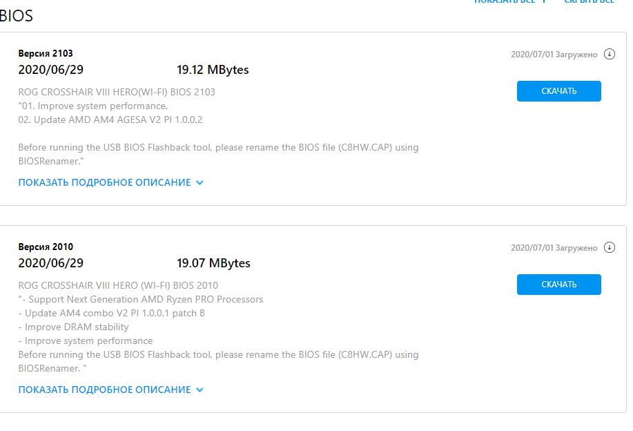 Так, я тоже спорить то не собираюсь. Если и бета - то странно что в статусе релиза, ибо бета была именно 2101 т.е. по факту 3 биоса: 2101 - Бета 2103 - AGESA V2 PI 1.0.0.2 ( у меня не работает по сути) 2010 - AGESA V2 PI 1.0.0.1 patch B ( т.е. здесь более старый микрокод, и биос при обнове говорит что дата релизы 03.06.2020