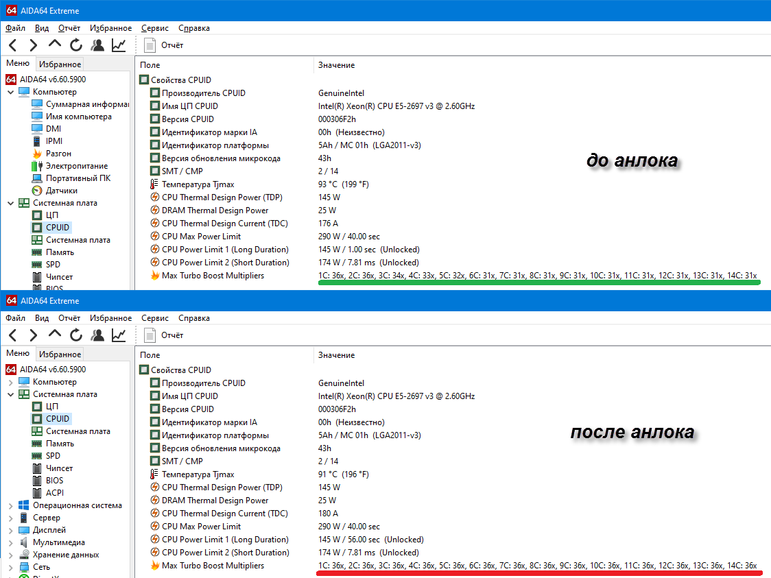 Та там нечего раскрывать - некоторые урезают, некоторые нет, в целом +- одинаковые балы в синтетике, ед что иногда можно убрать из сис32 файл mcupdate_GenuineIntel.dll и обновитьсО на нужный микрокод с подд TSX(14года) например для эмуляции PS3 игОр.. Сам перепробовал все - удОлил из биос все микрокоды, юзаю который идёт с вин 10 (19041.264 версия) 43 микрокод в самом файле mcupdate_GenuineIntel.dll. Правда у меня Rampage V материнка там своими силами снимаются некоторые ограничения на тдп, например стоит E5 2678v3 в синебенч получилось выжать 138TDP без тротлинга у проца с пониженым вольтажём и унлоком турбобуста...