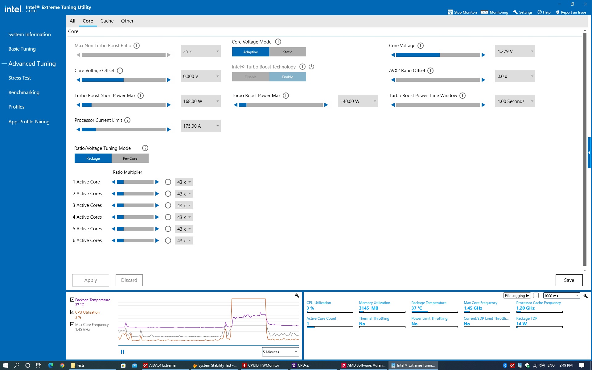 По непонятной причине на i7 множитель выставляется только на package, а per core остаётся с дефолтовыми значениями. На QK3M и QK3S множитель выставляется и там и там. Разумеется Core i7 можно "догнать" через XTU. Но всё равно неприятно.
