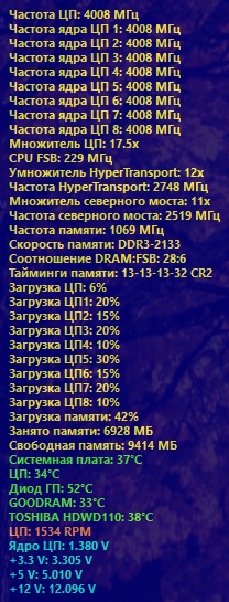 AMD FX(tm)-8320 Eight-Core Processor CPU Clock Ratio = 4440 MHz (240*18,5), при CPB – 4560 MHz (240*19) CPU Vcore = 1,381 V (+0,075V)