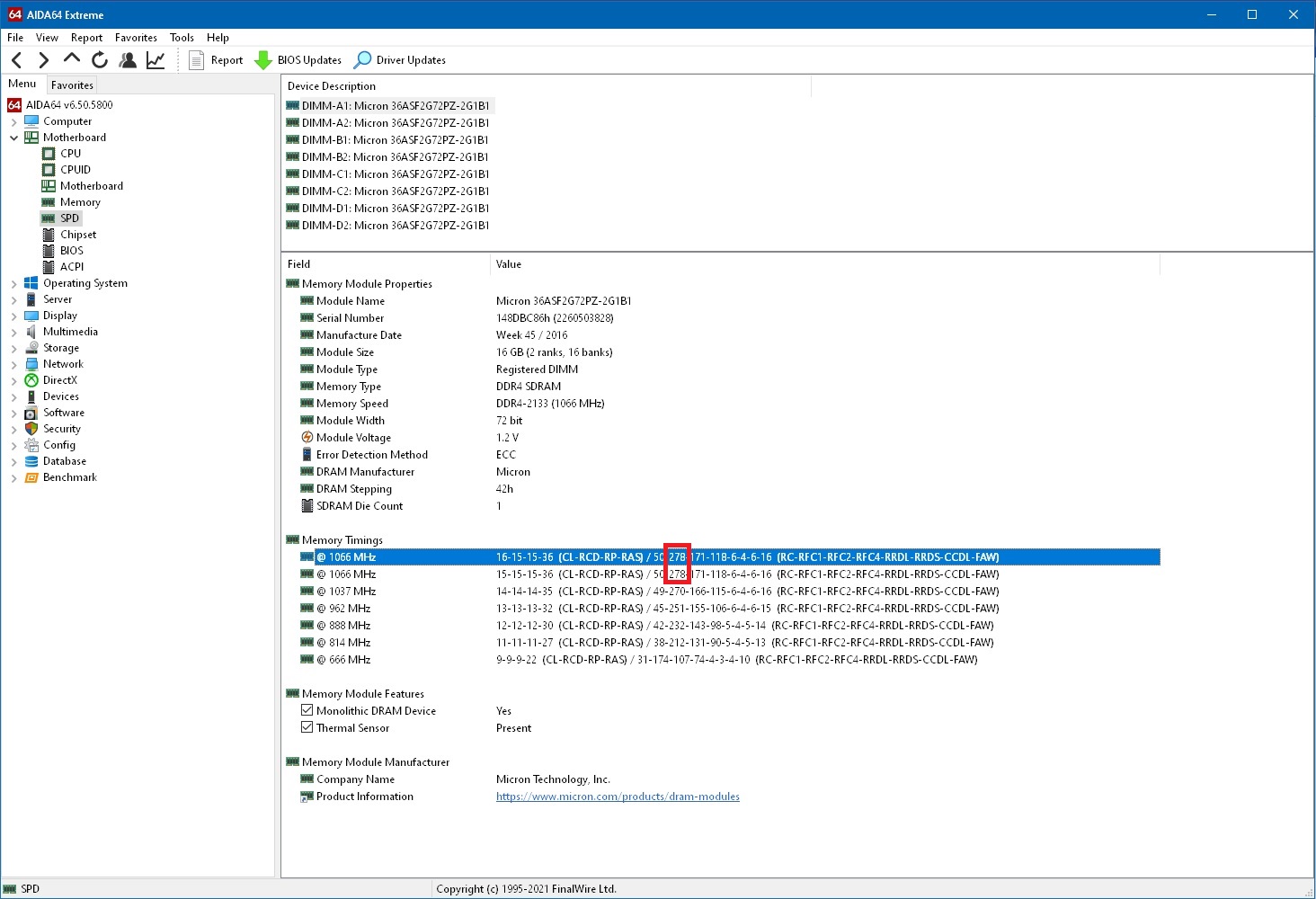 У вас что-то в обоих случаях 2 ranks 16 banks, а чипов, говорите, разное количество... Интересно.
