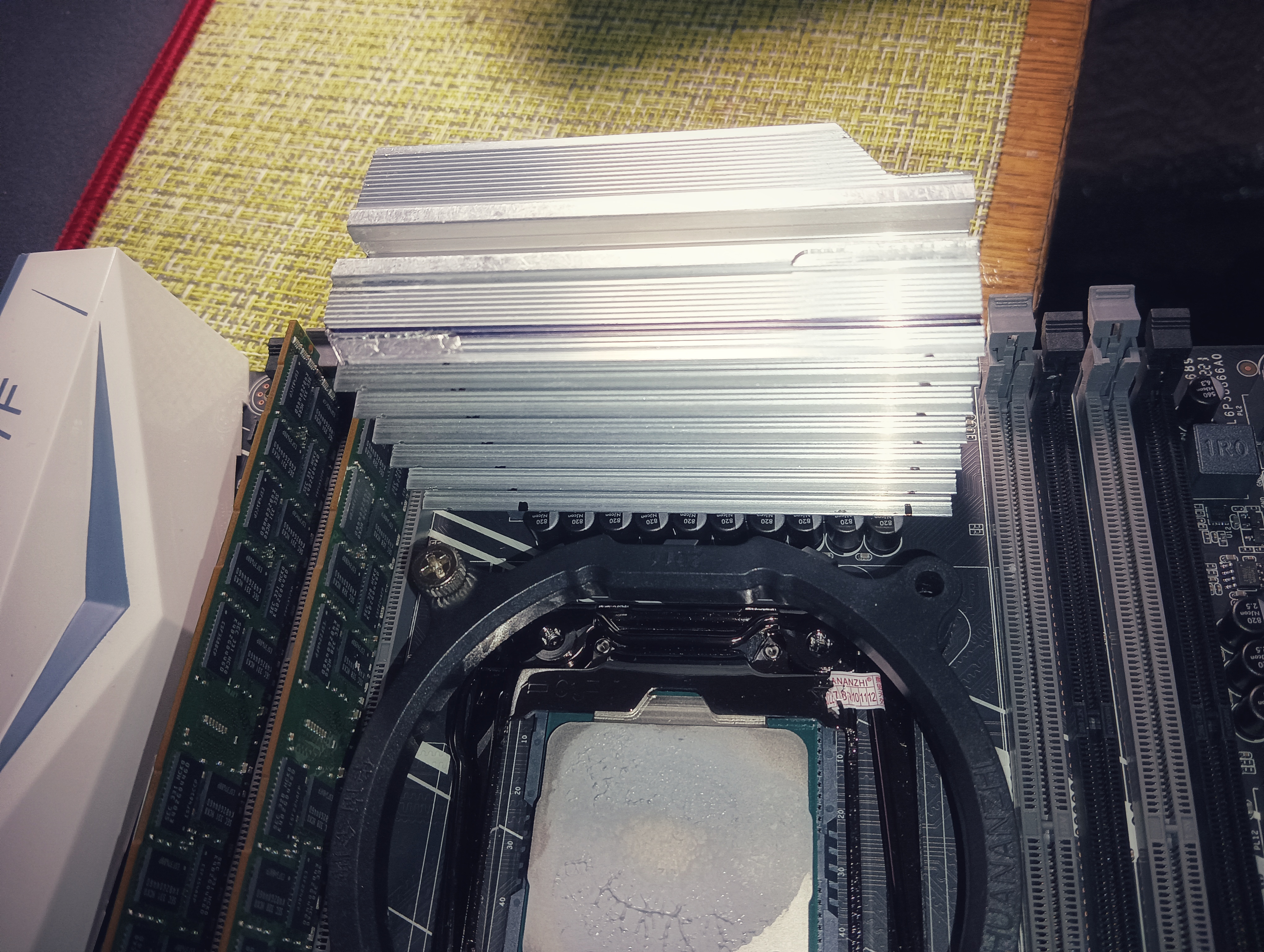 Пока что не могу ничего сказать по качеству охлаждения, ибо уехал по работе...запустил игрушку, поработало, радиатор еле тёплый, да и основная работа в виде Solidworks так же не будет особо нагружать проц. В радиаторе сделал отверстие под термопару для проверок, на будущее.