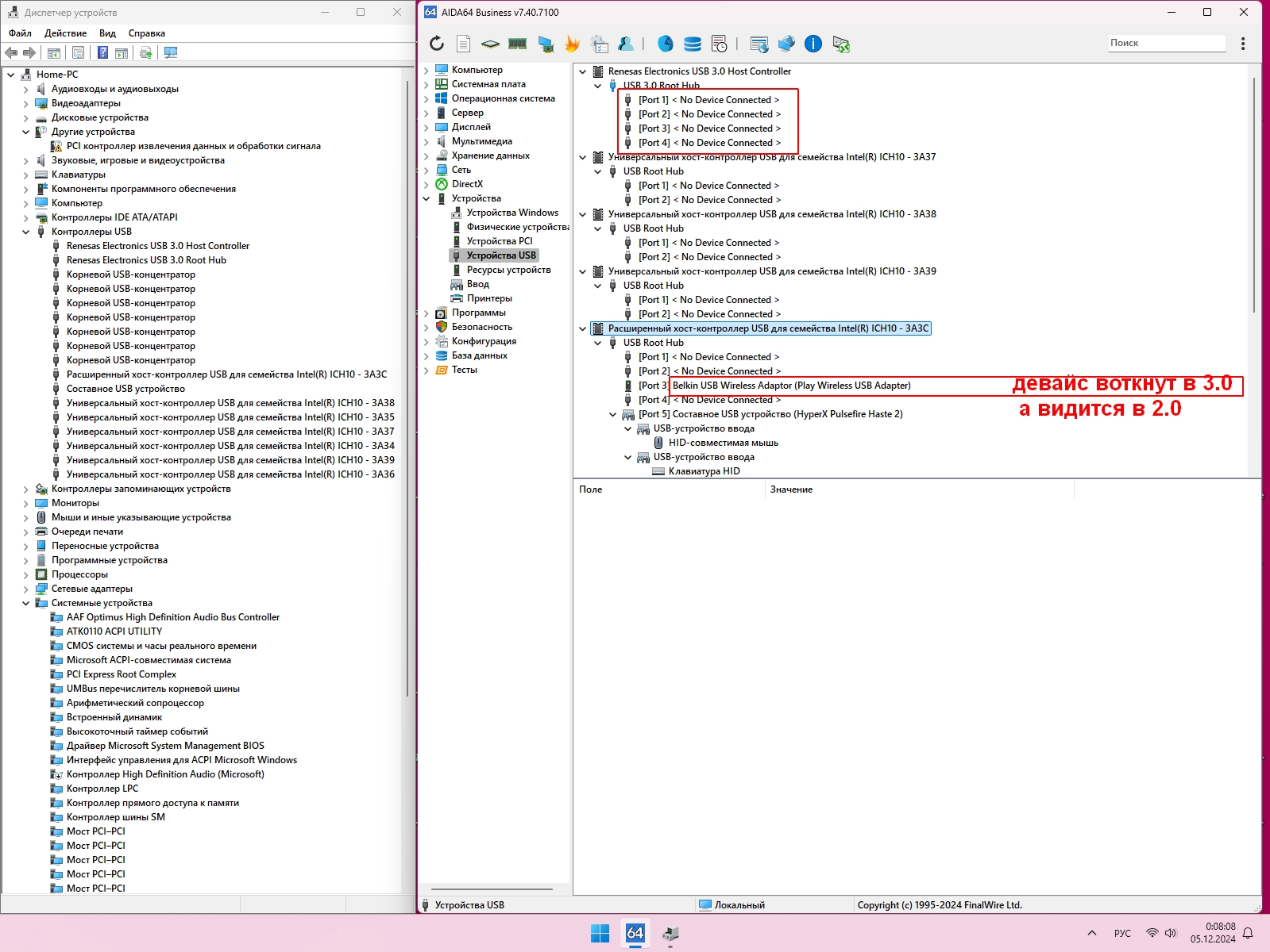 эт поглядим, а пока - вот ещё вопрос: Сую в порт USB3.0(синий), а в реальности отображается↓ совсем в другом порте и не 3.0, а 2.0