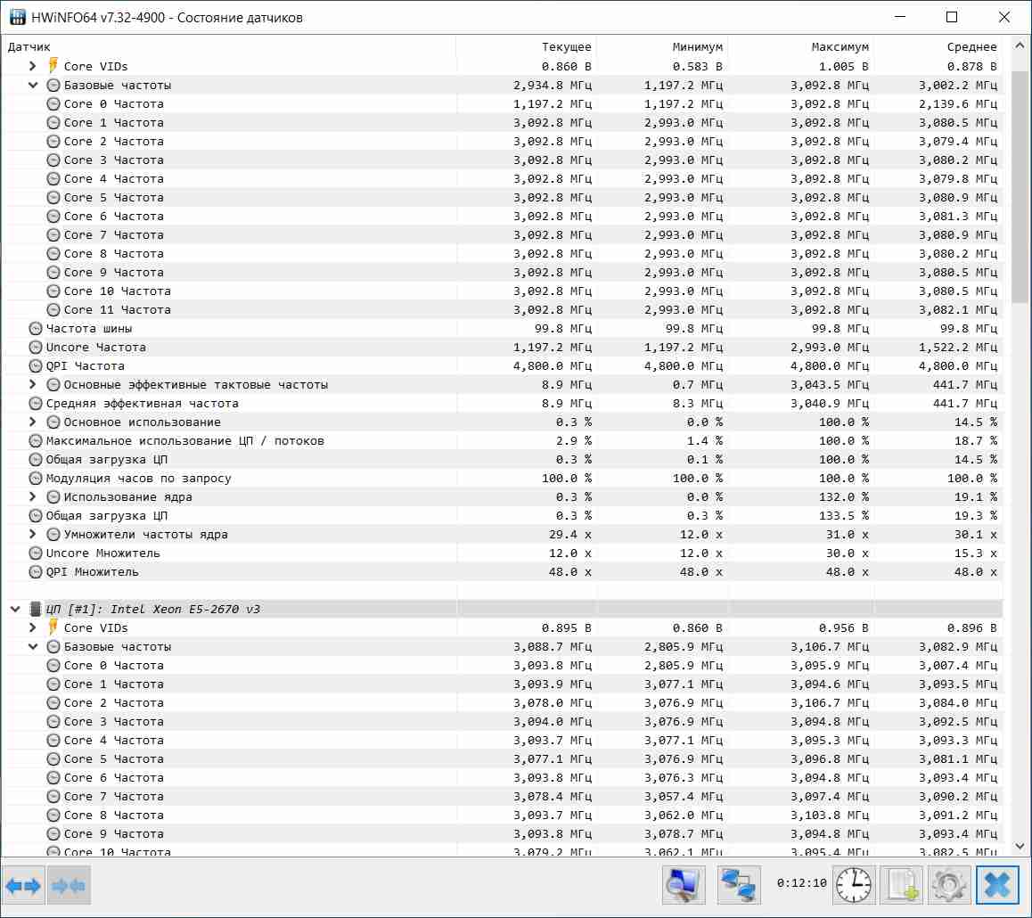 eugene159 пишет про холодные процессоры (2699v3) и их потребление в 160Вт. Возможно на брендовой плате примерно так и было, т.к. кратковременный лимит PL2 по дефолту= 120%TDP. Но у меня было несколько иначе. Прошлой зимой замерял потребление токовыми клещами. На на китай-плате с неработающим TDP (баг FIVR) и анлоком процессоры потребляли до ~300Вт каждый, но при этом все равно сбрасывали частоты из-за ограничений по току. Я бы не сказал что они были холодные, пришлось заказывать другие кулеры, т.к. 4х трубочные залманы не справлялись.