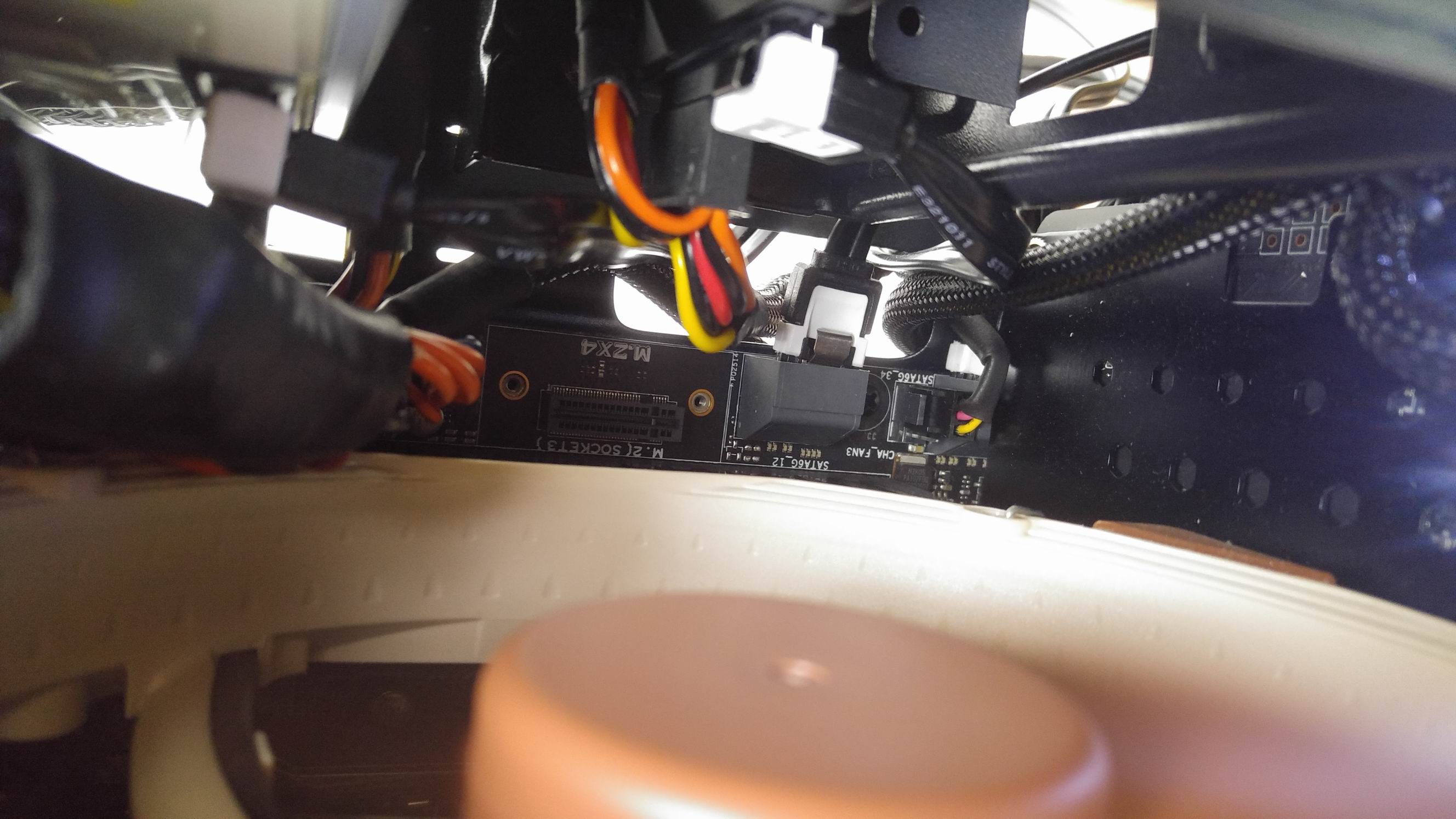 собственно по фотографии видно что если не использовать укрепляющую рамку то сама плата ССДшки нормально поместится - да еще и никаких траблов с температурами под обдувом Ноктуа