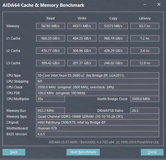 по мне, у тя сейчас норма(будет +-33 - эт проседает), хотишь больше - надо проц гнать по шине ибо за запись отвечает контроллер памяти работающий на частоте проца -> Тема-статистика: Xeon + обычные матплаты #15409136 + смотри пред страницу по tREFI ака Dram Refresh Interval , + что у тебя выставляет по всем вкладкам в Tertiary Timings особенно(могёшь 1 в 1 выставить, и выложи до изменений - интересно).