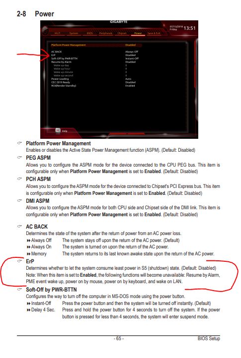 Если хотите выключить заднюю подсветку, то нужно включить ErP, но при этом лишаетесь функцией зарядки телефона по usb, если ПК выключен, не будет работать wake on lan. Скриншот во вложении.