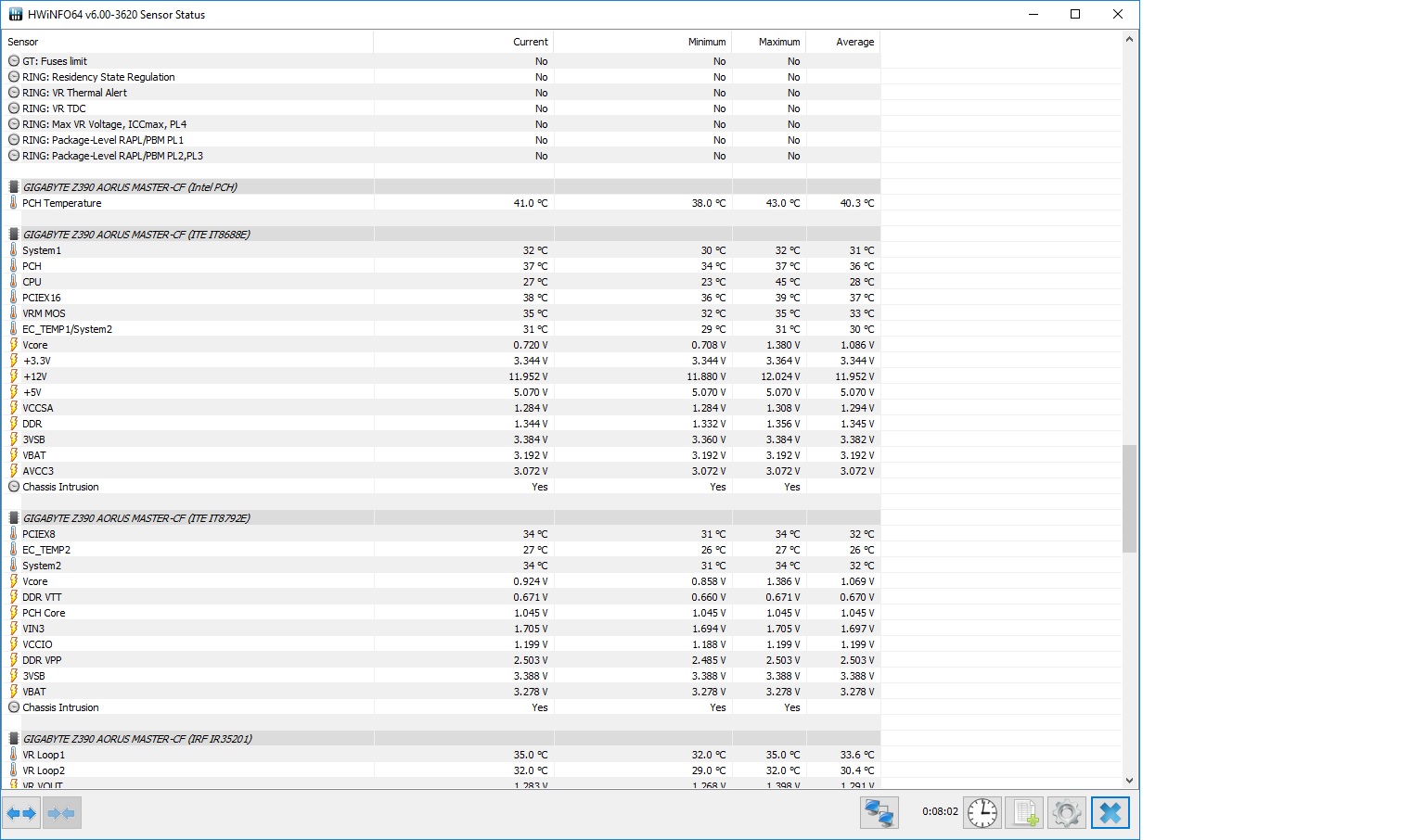 Биос в стоке, ничего пока не крутил кроме XMP. Температура в простое PCH (Intel PCH) около 50, вторая температура PCH (ITE IT8688E) около 40. CPU 8700K. Данные с HWINFO. Комнатная температура 27. Почему такая разница? Первая температура, я так понимаю, с диода, а вторая с хаба. У кого что HWINFO отображает по этому поводу?