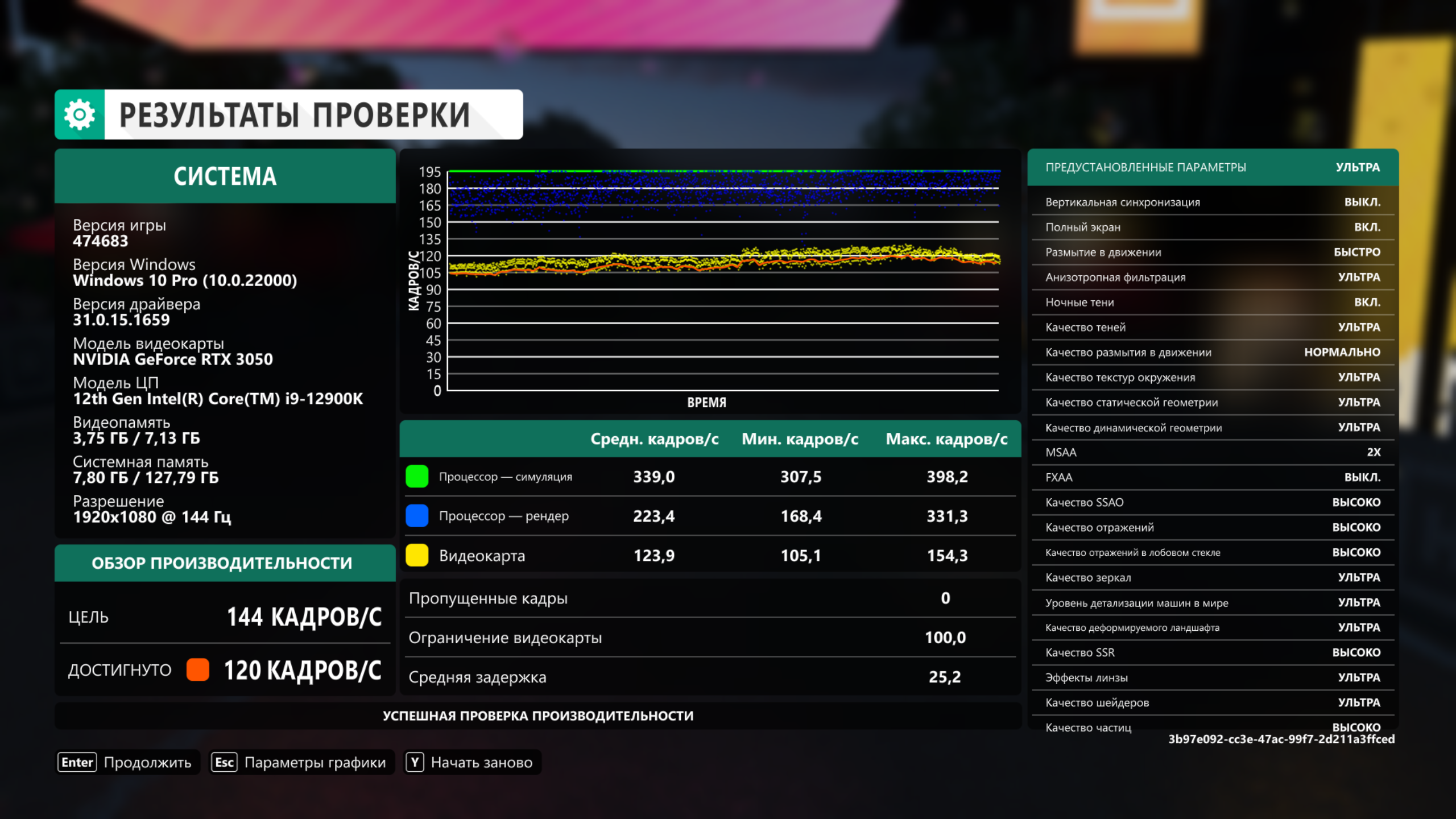 моя RTX 3050 в Forza Horizon 4 выдаёт в бенче средние 121 fps в Full HD на ультра,