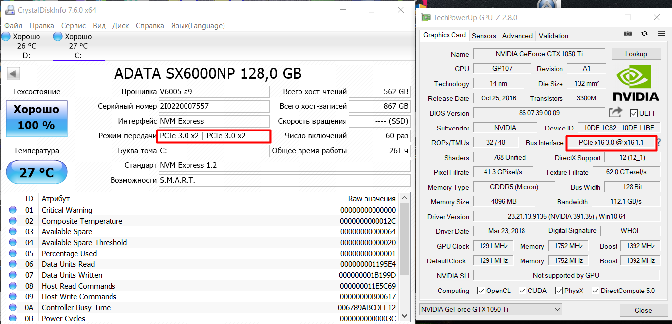 Не то чтобы мне скорости не хватало (даже на 1.0 норм), но не по христиански это, купить SSD PCI-E 3.0, а юзать его на 1.0 или 2.0 (в ущерб видеокарте) Было принято решение заказать переходник M.2 -> PCI-E x16. Вставил, работает, как надо. И видюха 3.0 и SSD тоже 3.0. Скрин и фотку прилагаю:)
