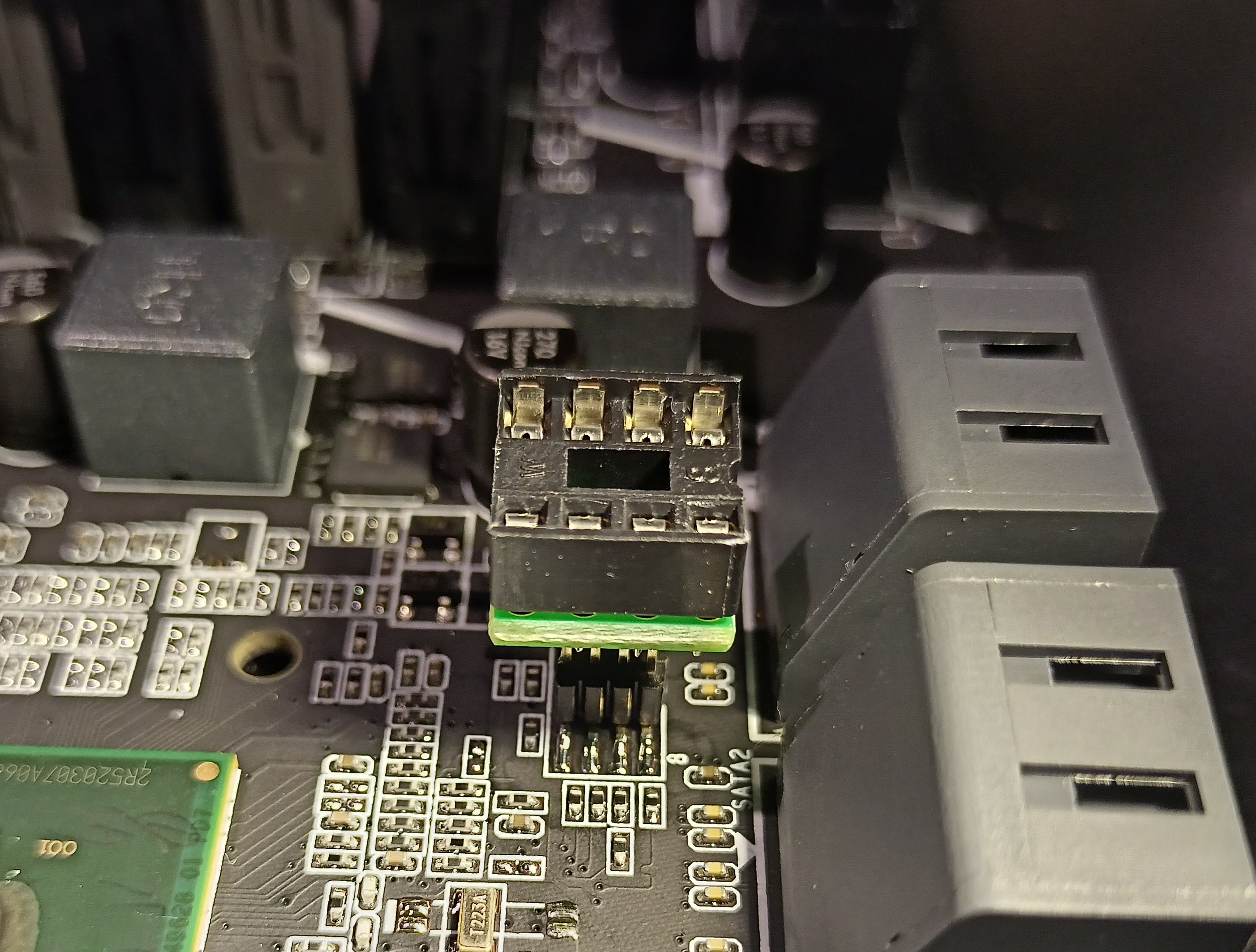 Имел некоторое время назад X99-T8 первой ревизии, но наигрался и продал товарищу с родным биосом. Сейчас плата у меня лежит на столе с преамбулой (зашили BIOS из-под Win7 и теперь пост-код b6 и пищит). Собсна вопрос... 886 или 341 в состоянии без пайки прищепкой зашить эту плату?