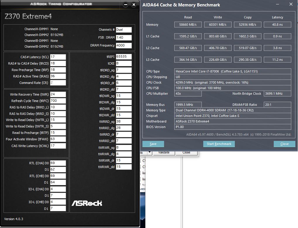 и скрин АИДА по памяти - то, что удалось добиться с памятью сейчас 4000 17-18-18-36 2 Вроде производительность относительно хорошая