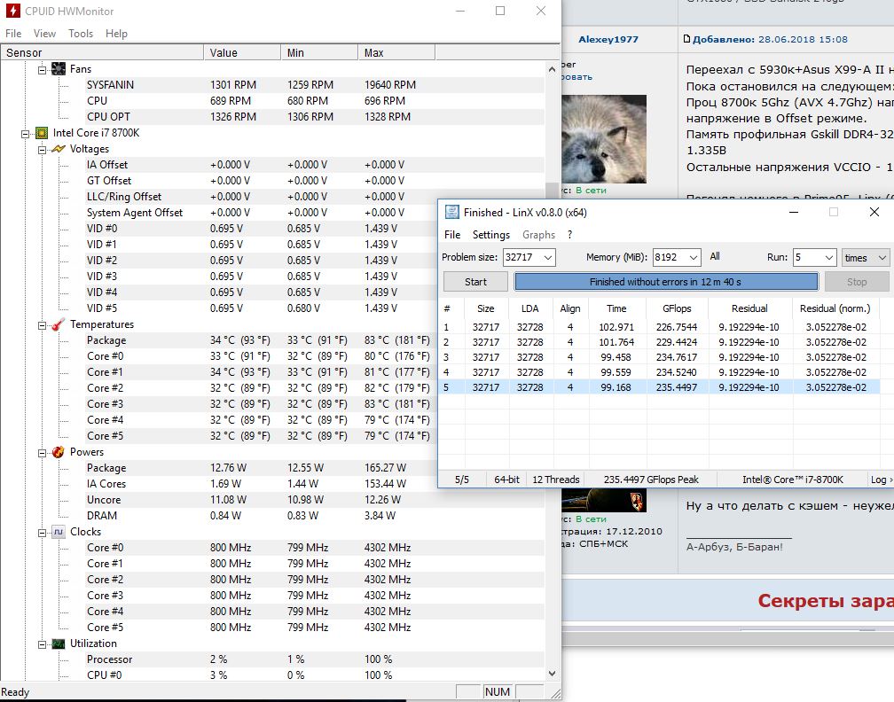 Погонял немного в Prime95, Linx (0.6.4 0.7.0 0.9.2) потом в Cinebench R15, X265 Benchmark - вроде все стабильно, осталось в играх погонять.